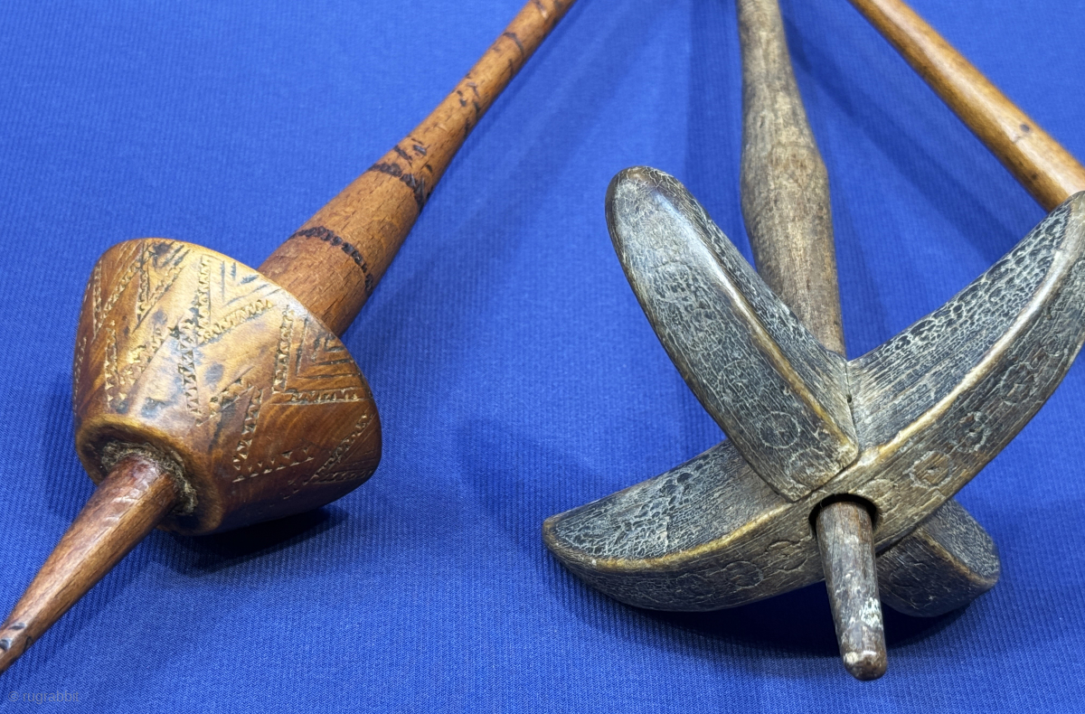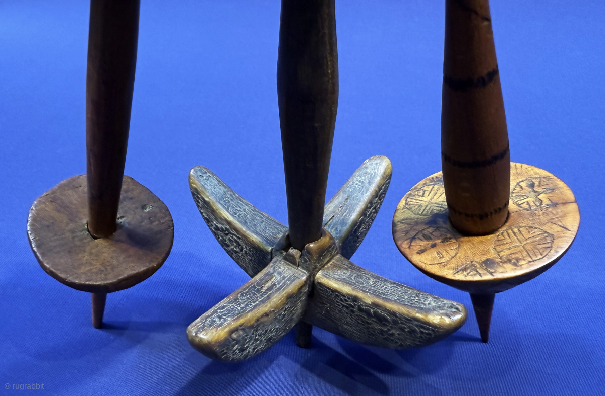 Anatolian Turkmen handcarved wooden drop spindles. Size : #1 - 12'' x 12.5'' - Lenght : ''30.5 cm x Circumference : 31.5 cm'' x #2 - 14'' x 7'' - Lenght : ''35 cm x Circumference : 18 cm'' x #3 - 11'' x 5.5'' - Lenght : ''27.5 cm x Circumference : 14.5 cm'' turkmansilver@gmail.com.