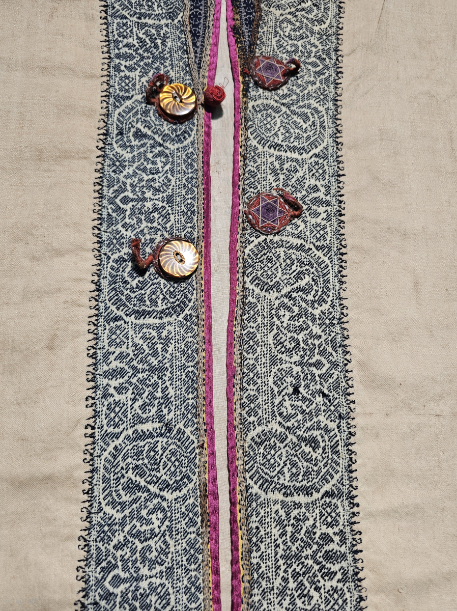 There are imitation pockets in the front and similar motifs on the sleeves, The back and Shoulders are Decorated with Elaborate Keri Butas..