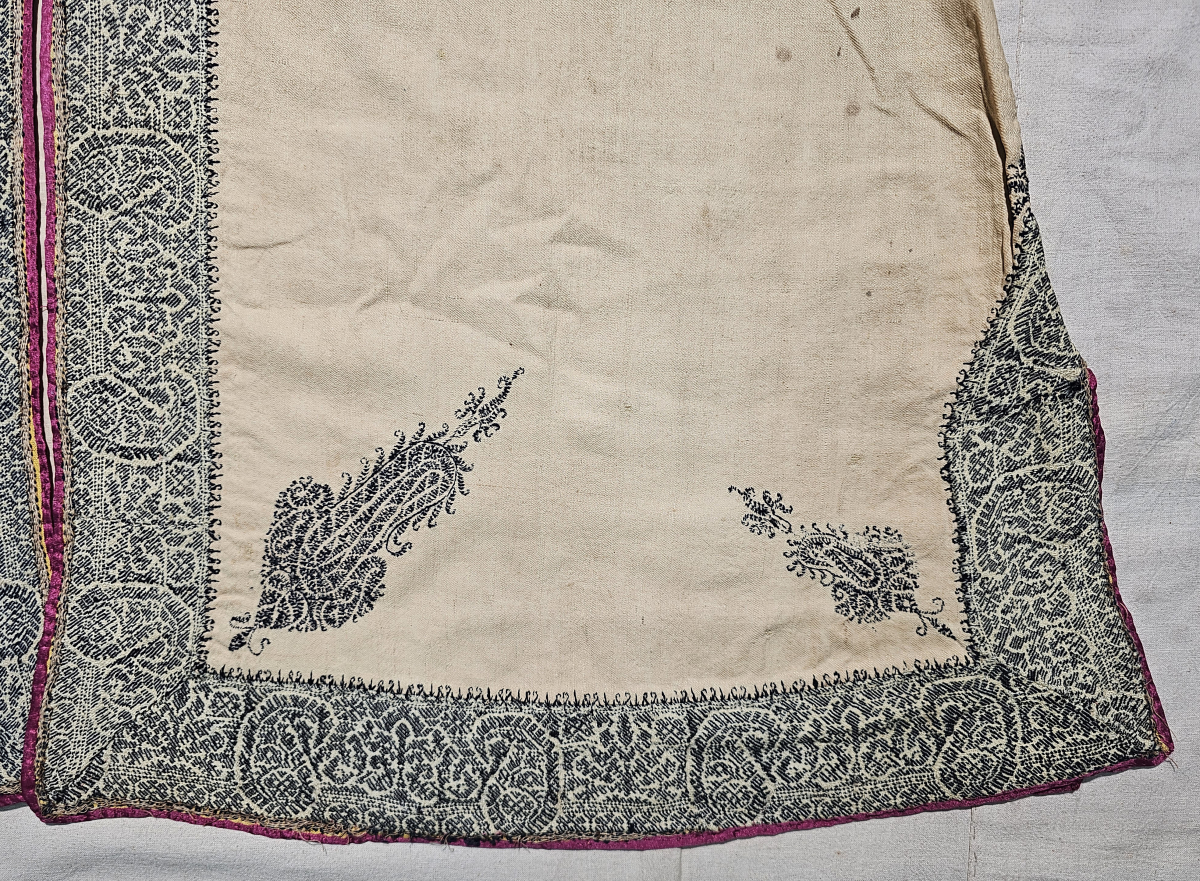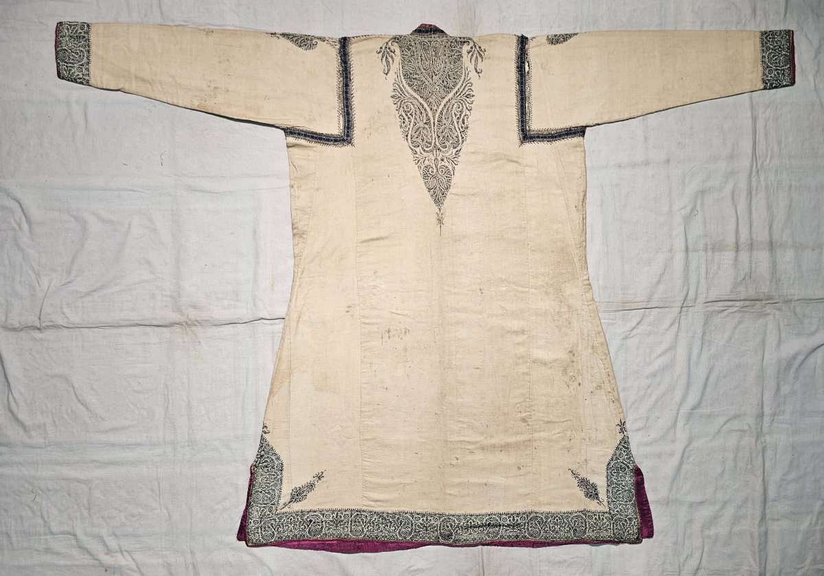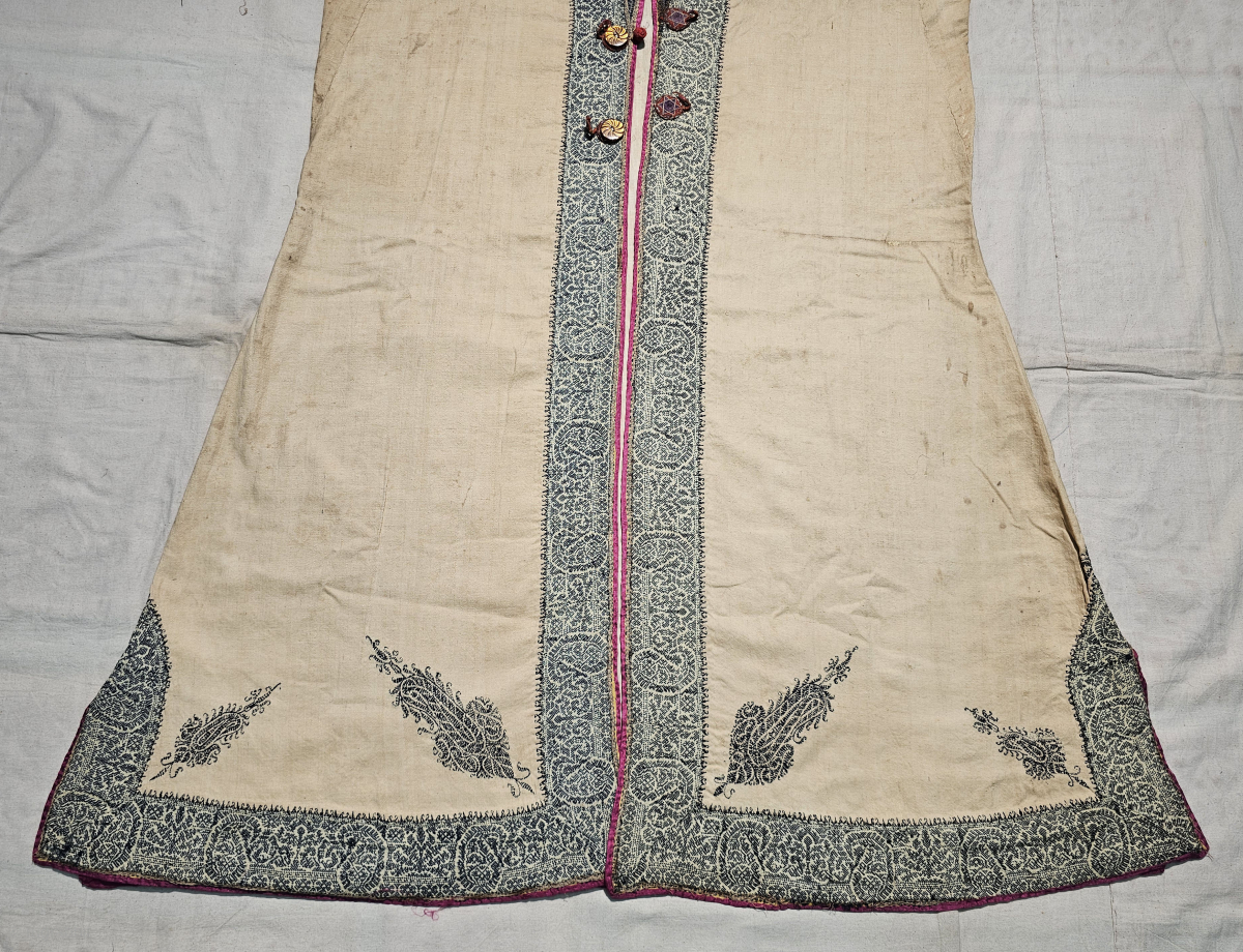 An Kashmir Indigo (Black)- Color Kani Jamawar Choga (Coat) Borders with Keri butis, From Kashmir, India. India.
