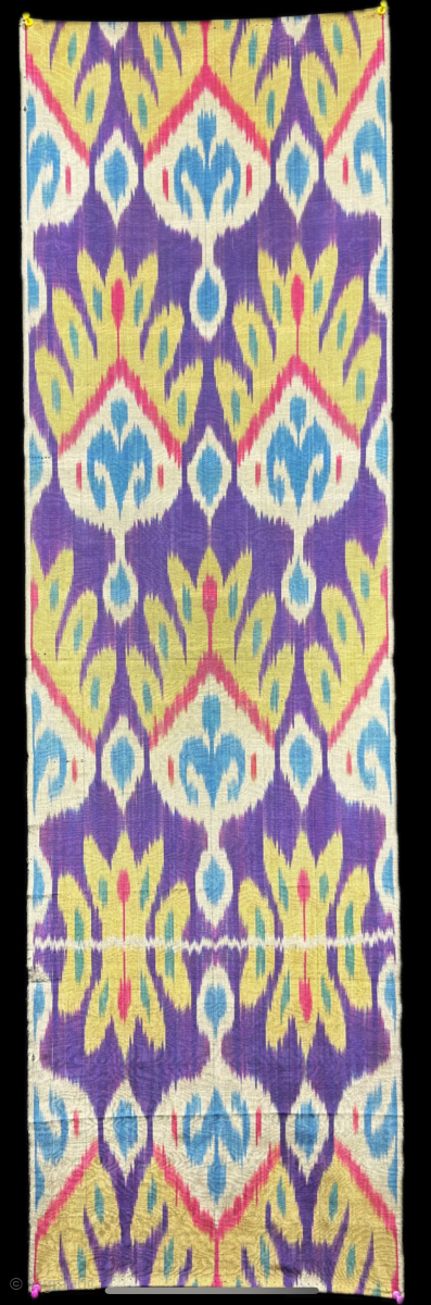 Tajikistan silk adras ikat fragment. Saturated natural colors form vegetable dyes. Size : 49.5'' x 14.5'' - ''125 cm x 37 cm'' turkmansilver@gmail.com.