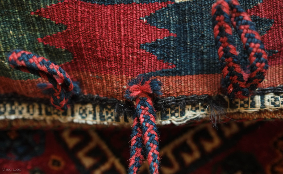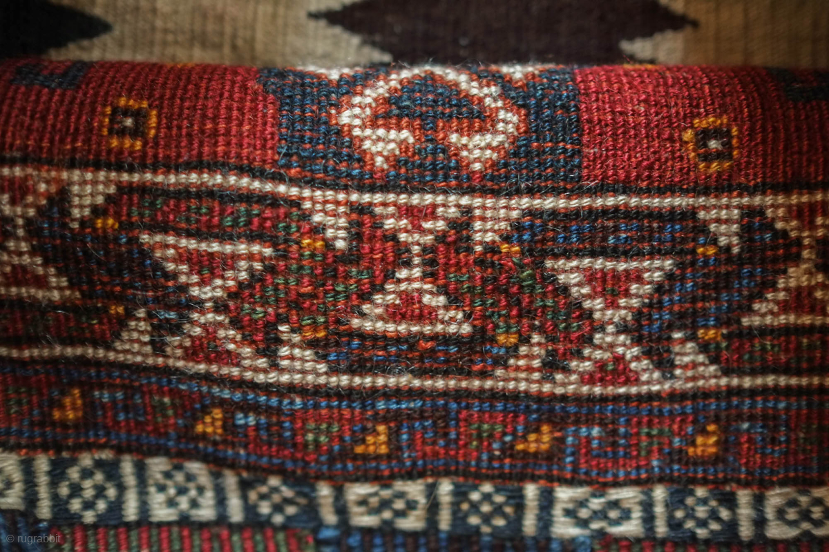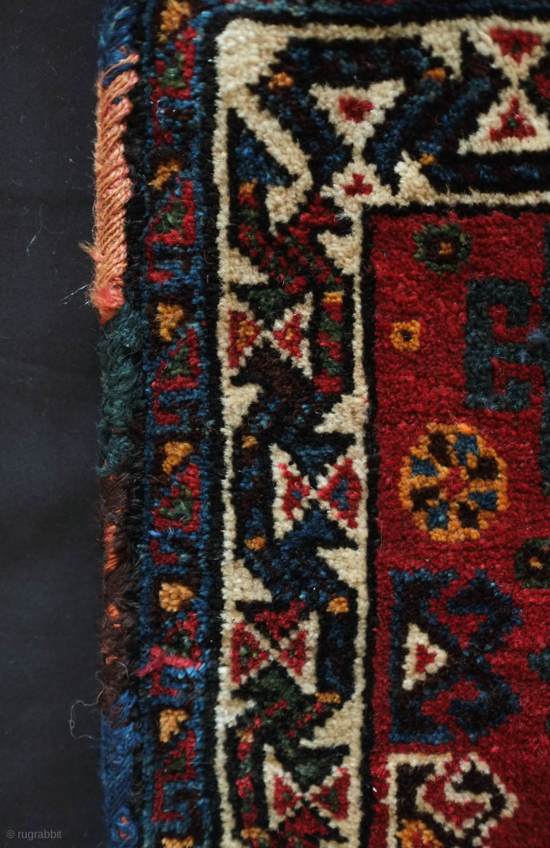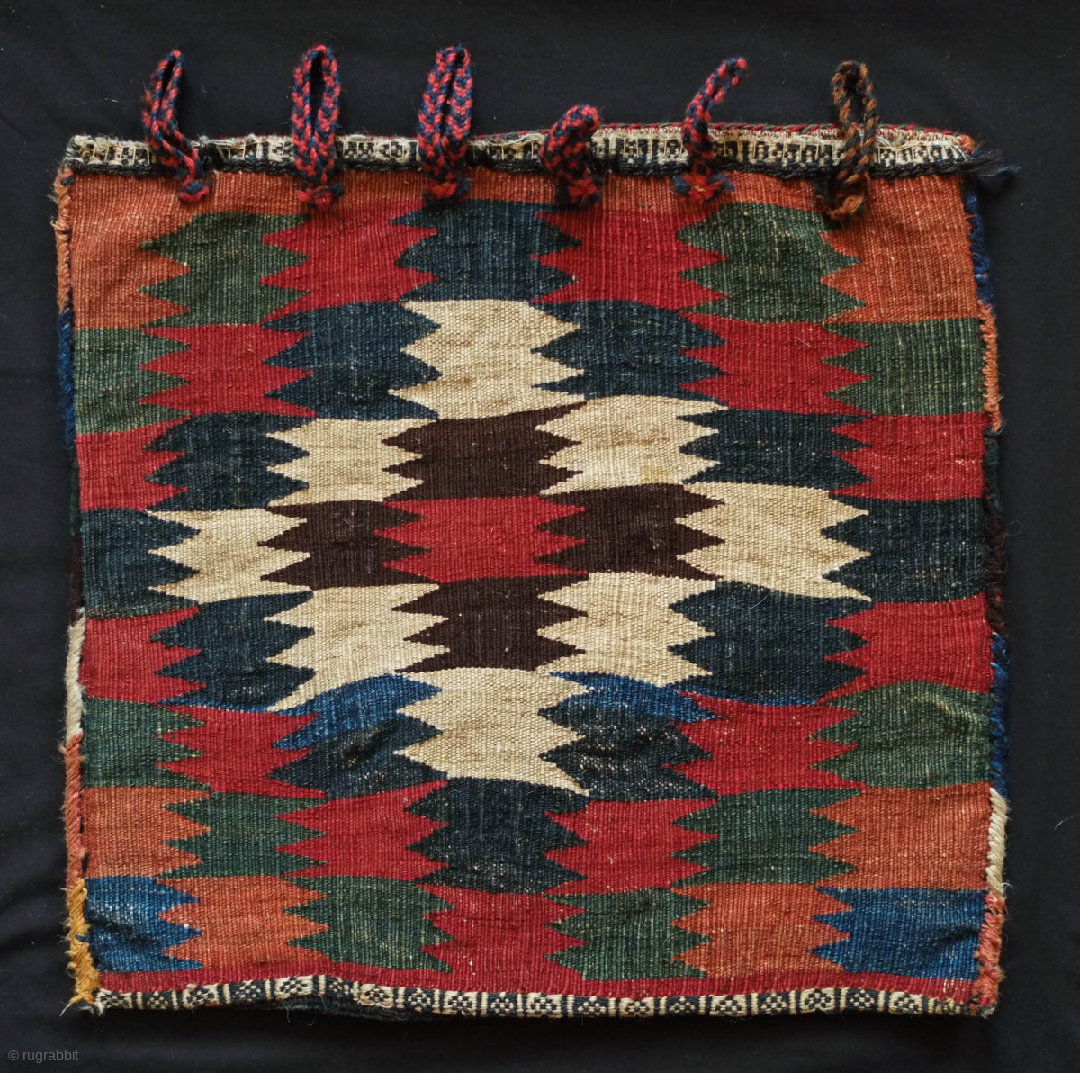 Qashqa'i saddle bag half, 4th quarter of the 19th century. Great condition with thick pile. Eye dazzler kilim back. All natural dyes. 51 x 55 cm