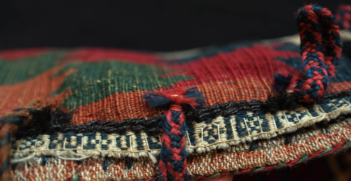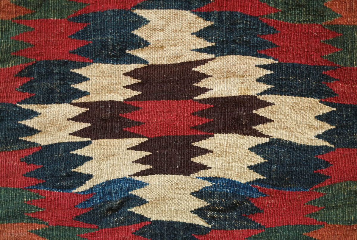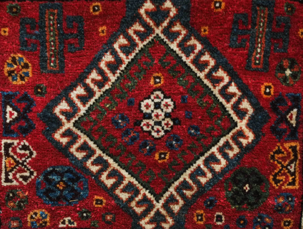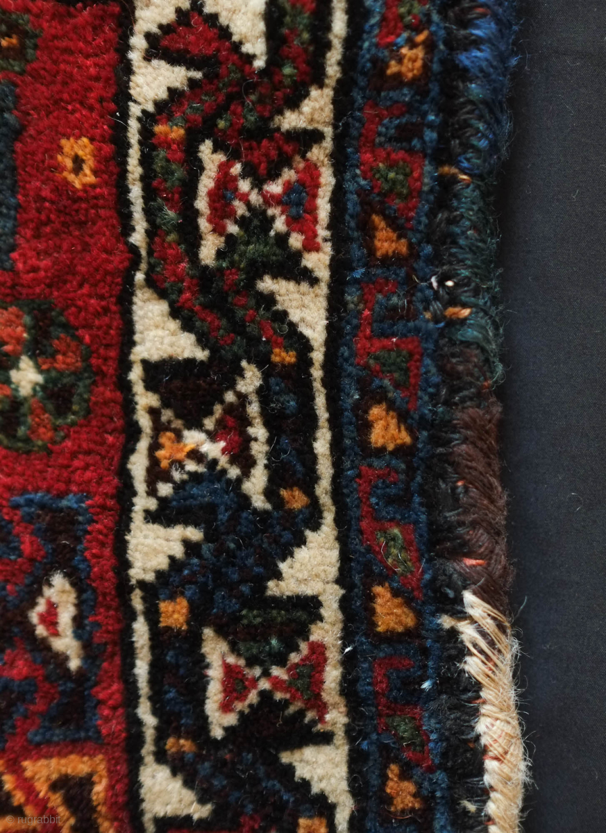 Qashqa'i saddle bag half, 4th quarter of the 19th century. Great condition with thick pile. Eye dazzler kilim back. All natural dyes. 51 x 55 cm