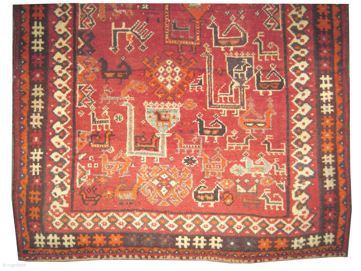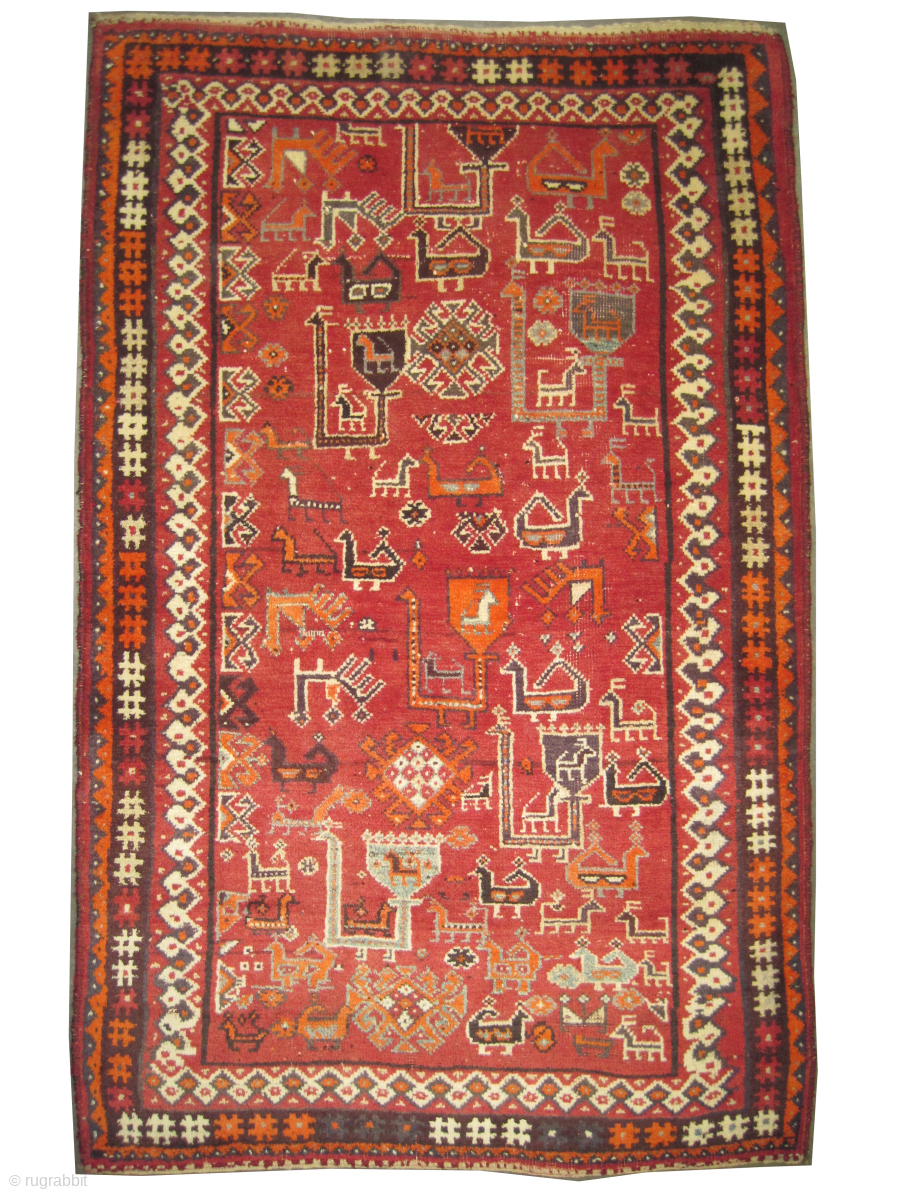 Gabbeh Nomad Persian knotted circa 1925 antique, collectors item, 100 x 158 cm, id: T-700