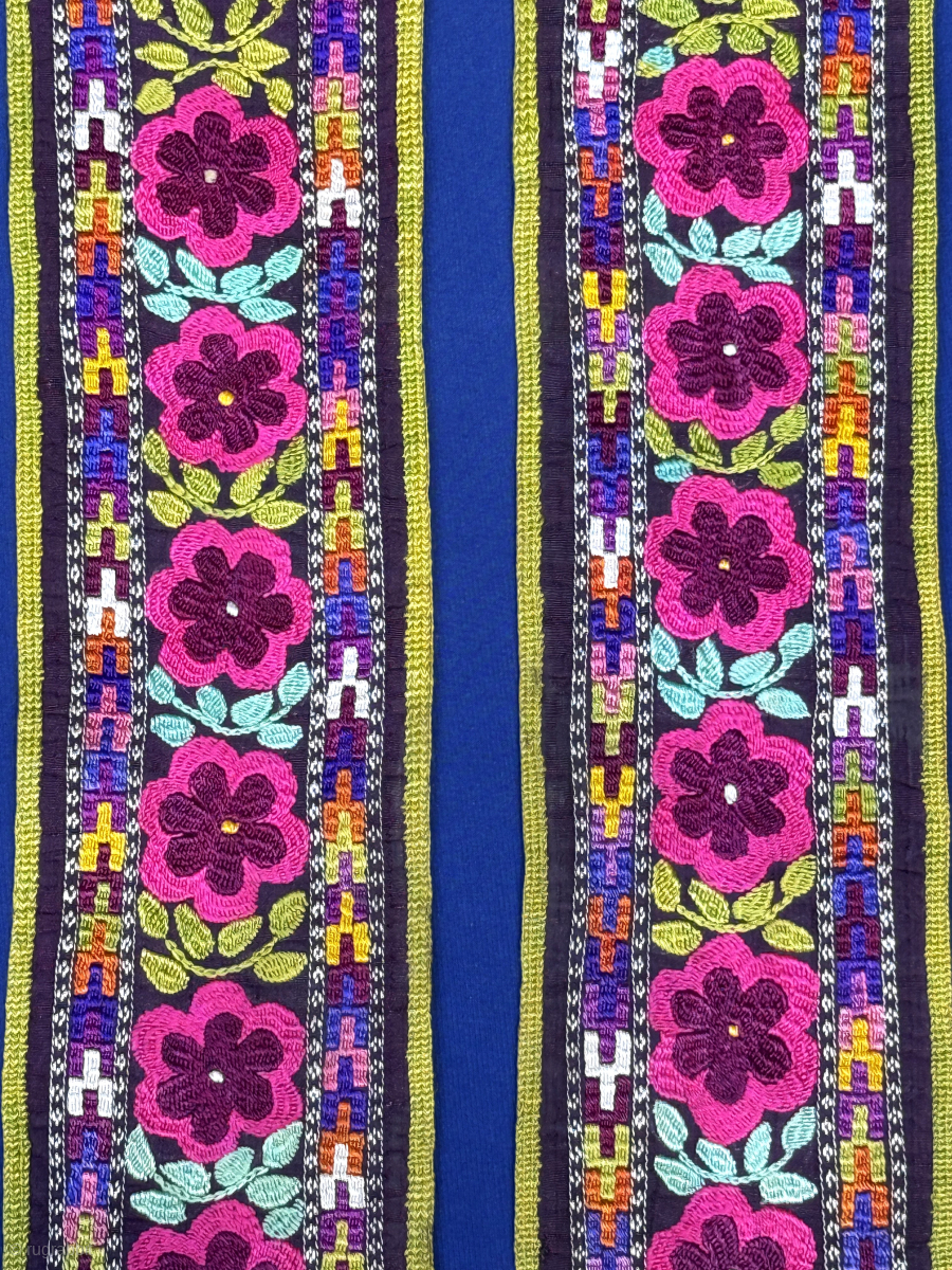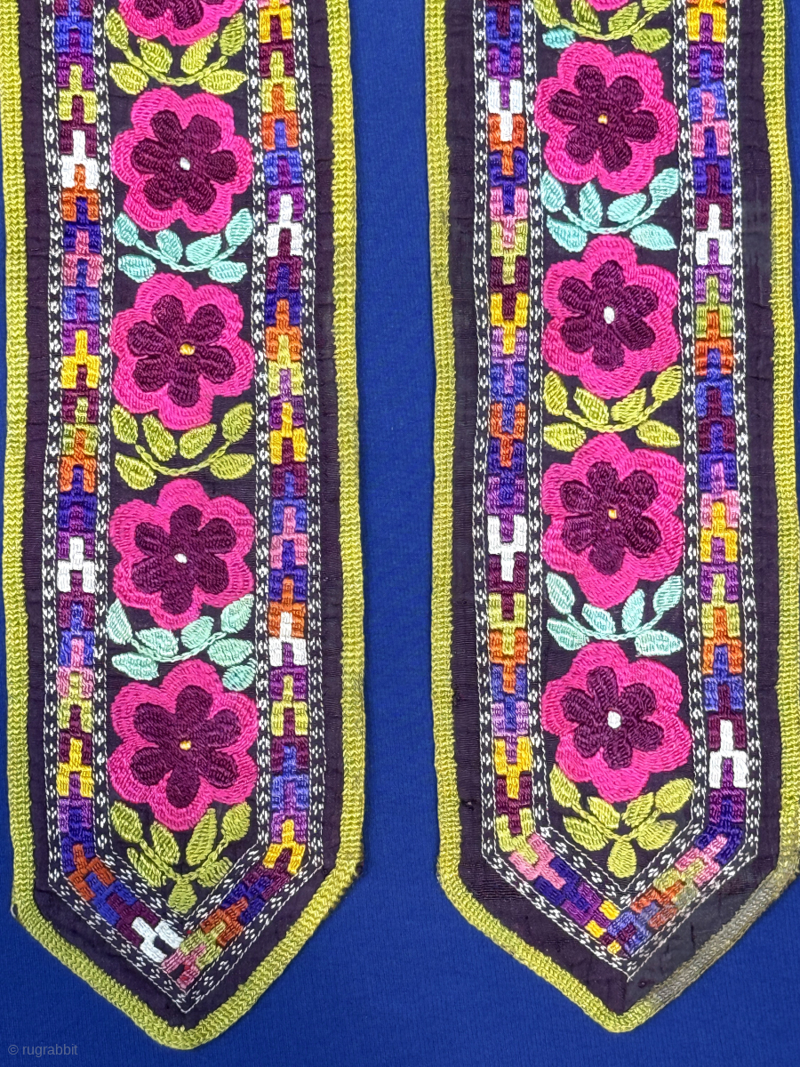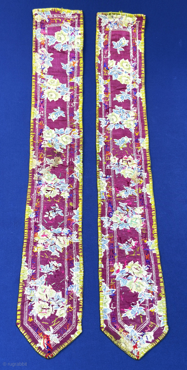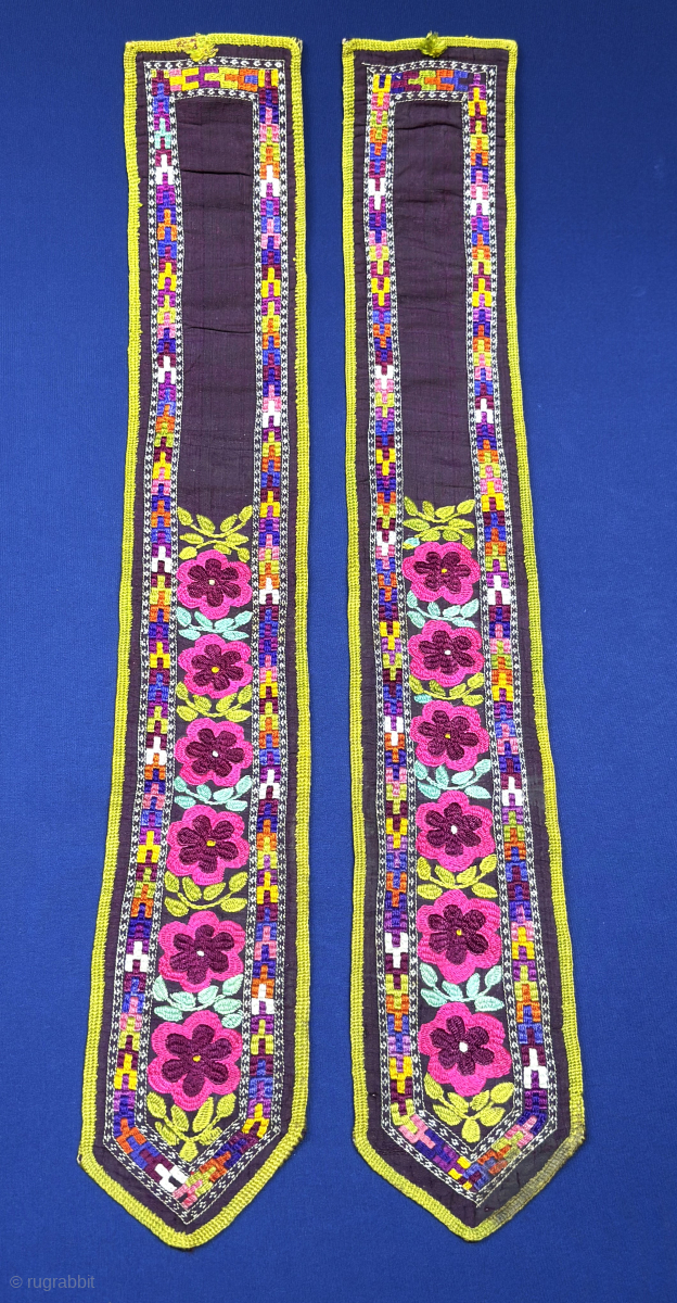 Afghanistan Lakai silk embroidered Putties. İt is fine chain stithed embroidery on cotton. Natural colors. Size - 23.5'' x 3.5'' - ''60 cm x 8.5 cm'' turkmansilver@gmail.com.