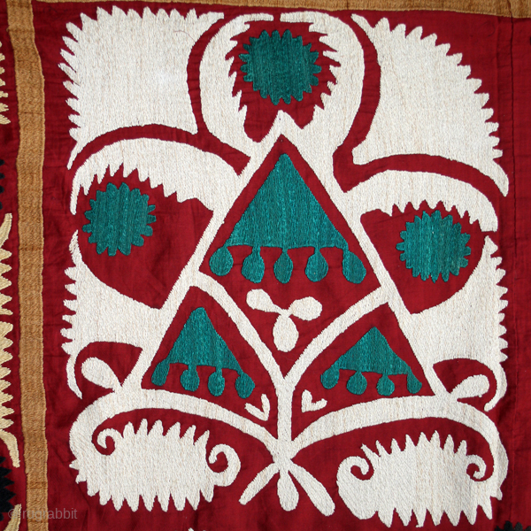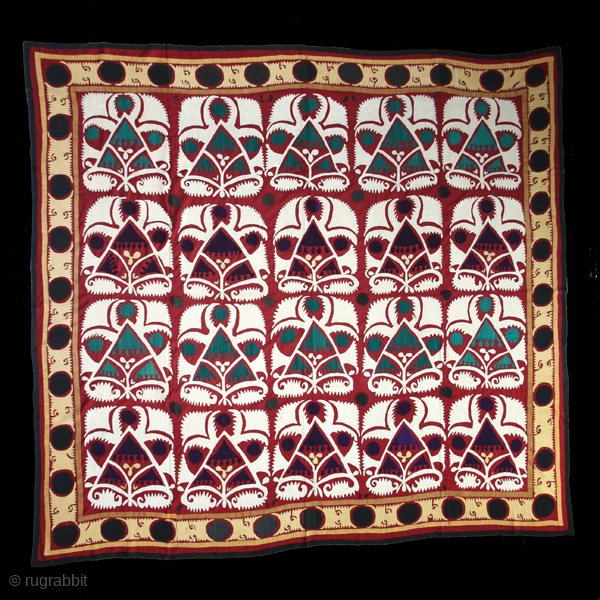 Suzani cod. 0053, Cotton embroidery on cotton. 1st. half 20th. century. Very good condition. Dimension cm. 260 x 280 (102" x 110"). More infos please ask info@lucasguaitzer.it.