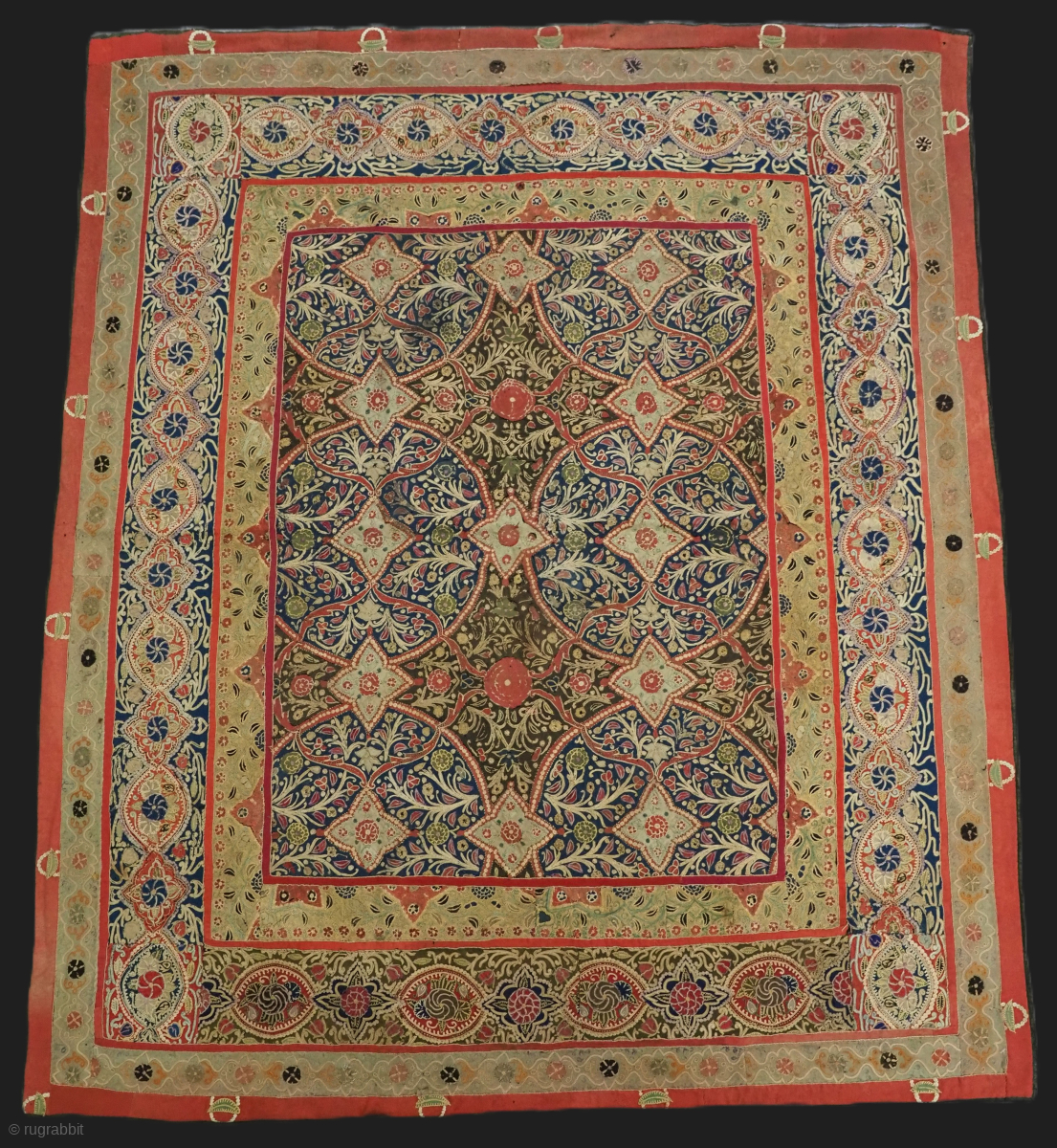 Antique Persian Rasht embroidery in silk with felt applique work.
