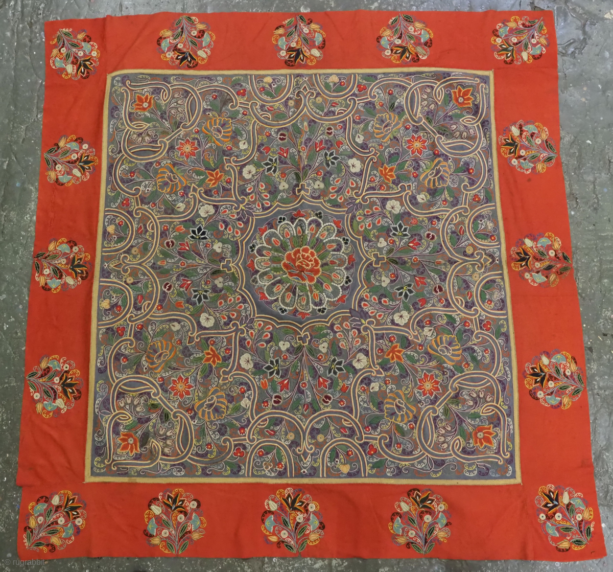 Antique Persian Rasht embroidery in silk with felt applique work.