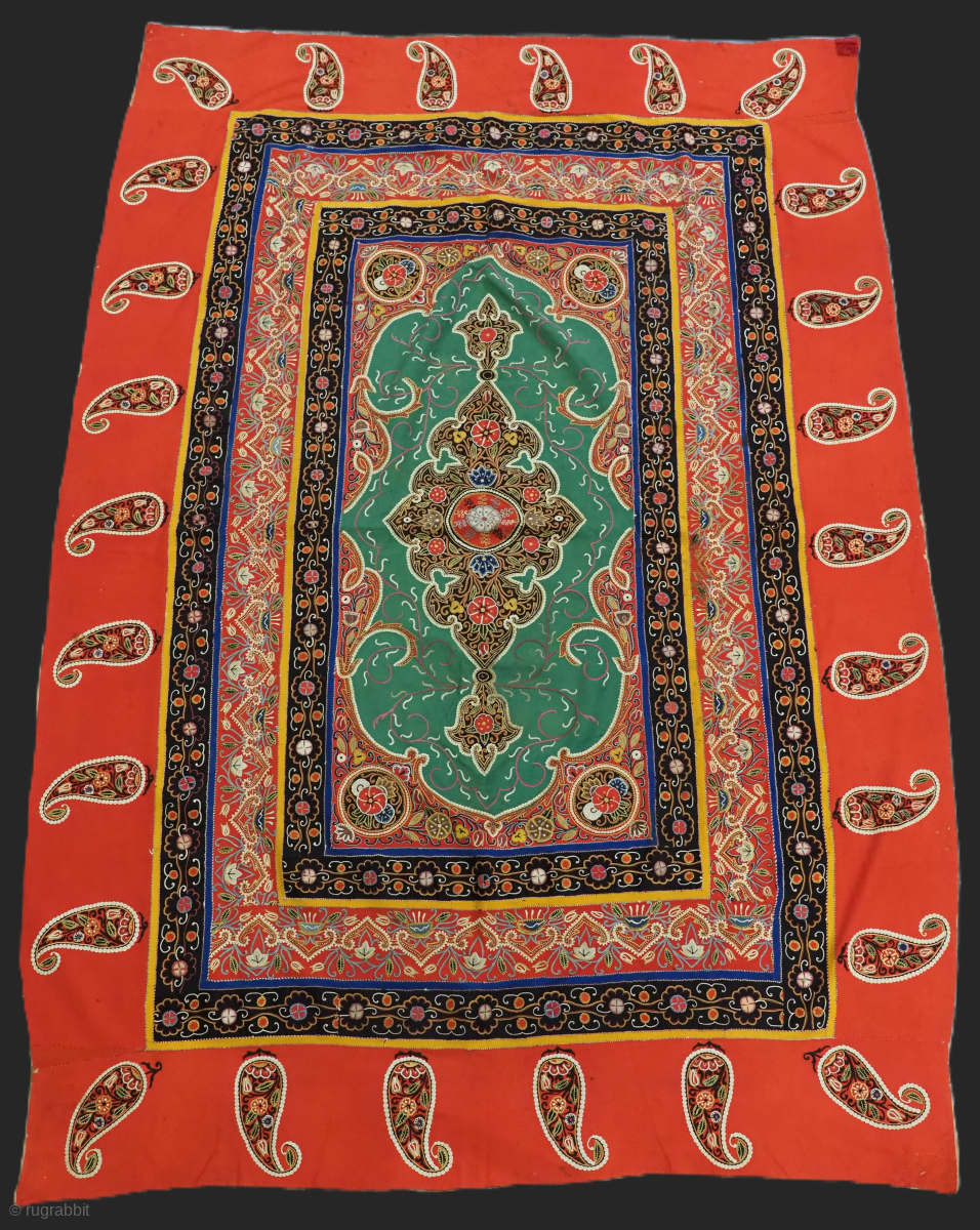 Antique Persian Rasht embroidery in silk with felt applique work.