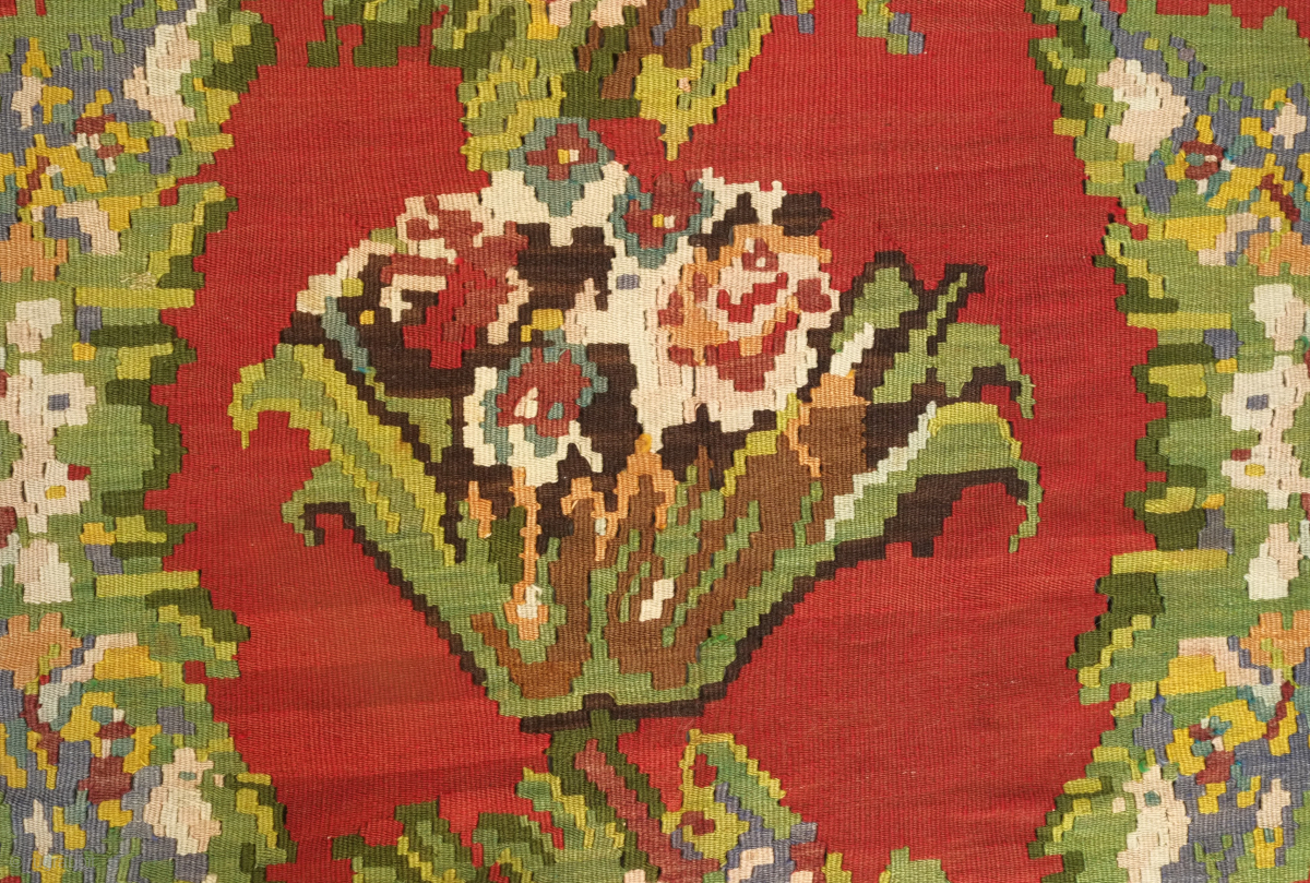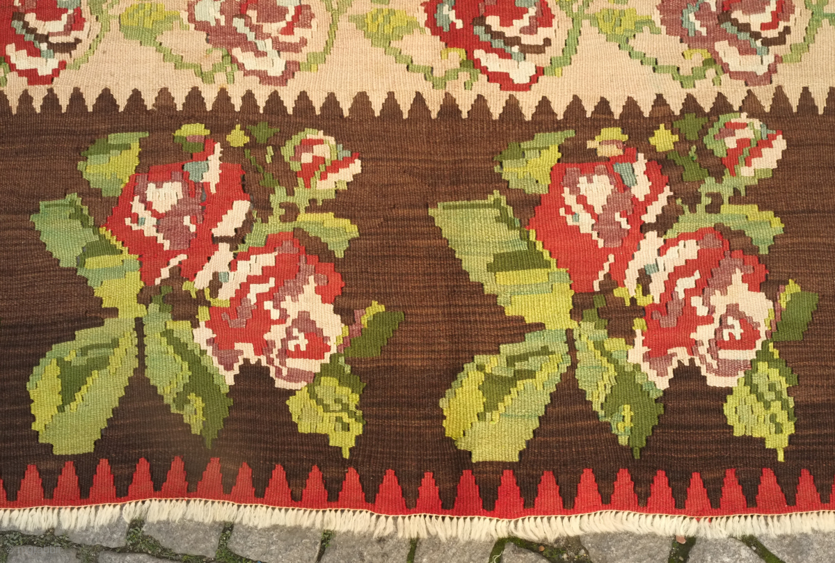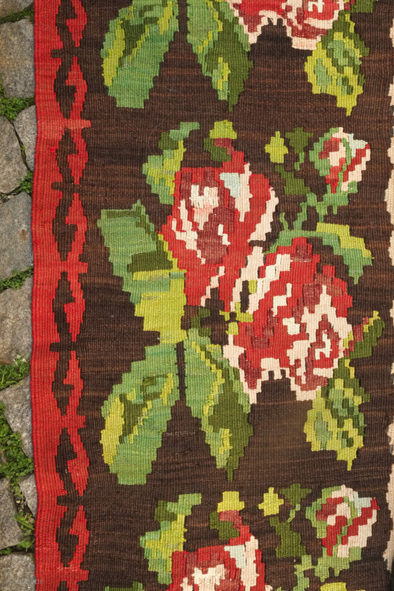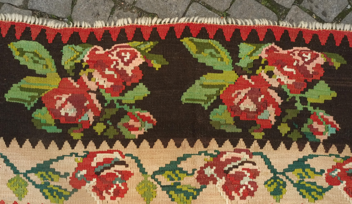 An early 20th century or late 19th century Serbian/Yugoslavian kilim in French or ferangi floral motifs. Fantastic colors and perfect condition for that living room. 300 x 400 cm. Contact danauger@tribalgardenrugs.com