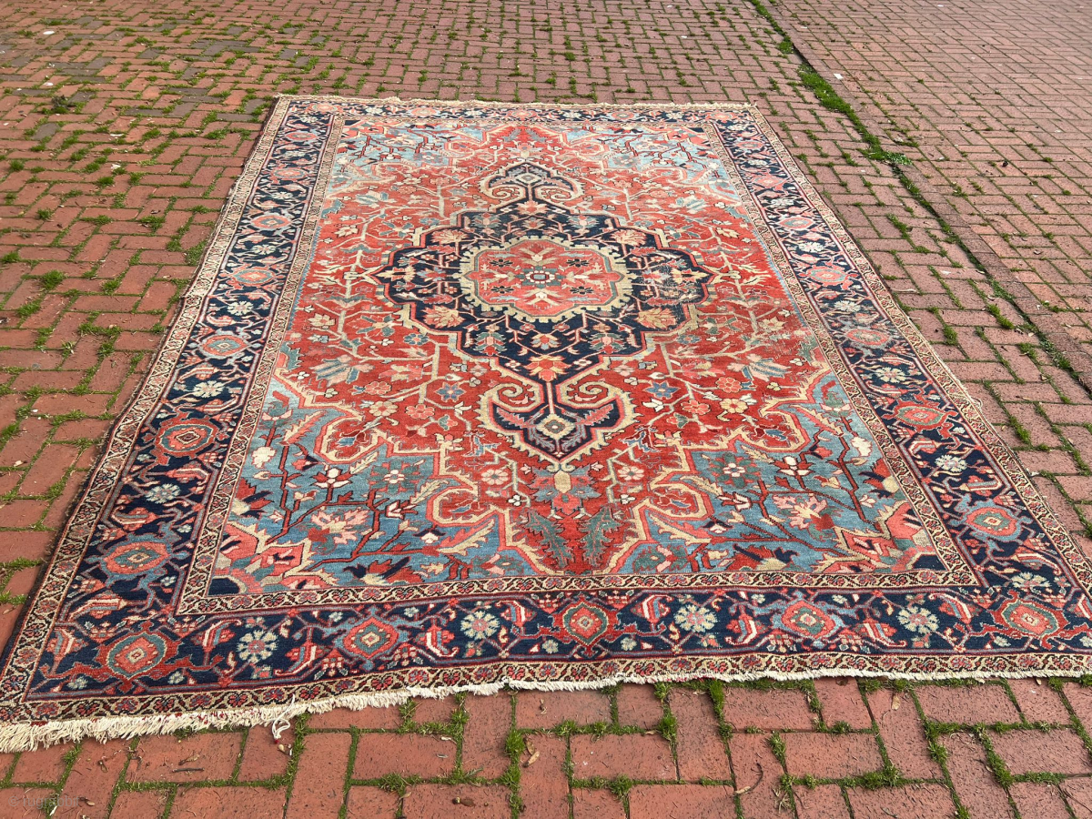 c 1910 heriz carpet usual patina, size 345 x 250 cm. Please contact for all enquiries via email or WhatsApp : ebay item // halilaalan@gmail.com