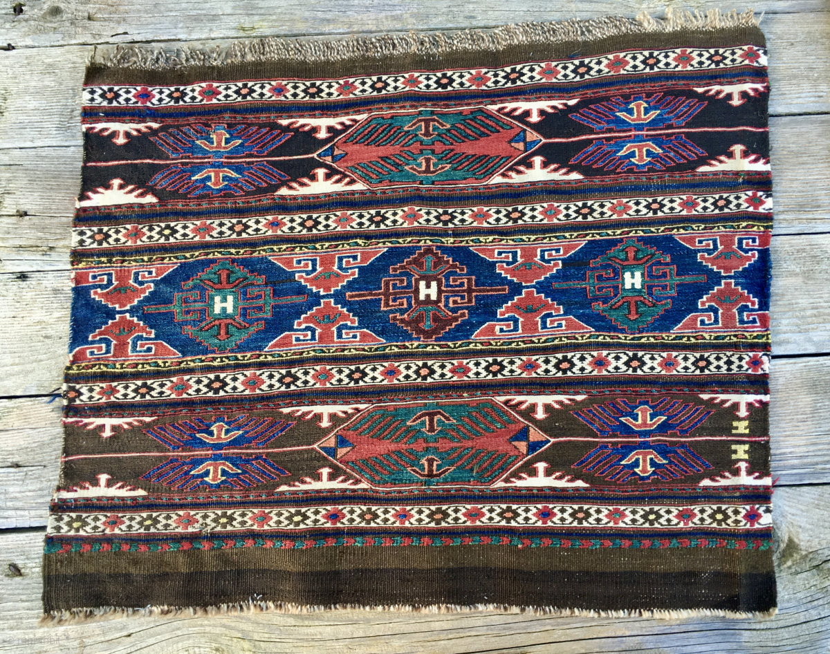 Beautiful & rare Eagle Shahsavan sumack mafrash end panel.