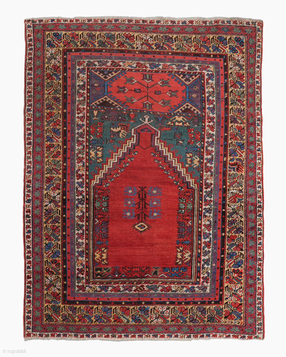 Overall, this Mudjur prayer rug is a fine example of mid-19th-century Central Anatolian village weaving, combining architectural clarity, symbolic depth, and a bold, unmistakable regional identity.