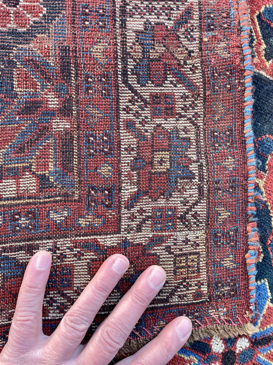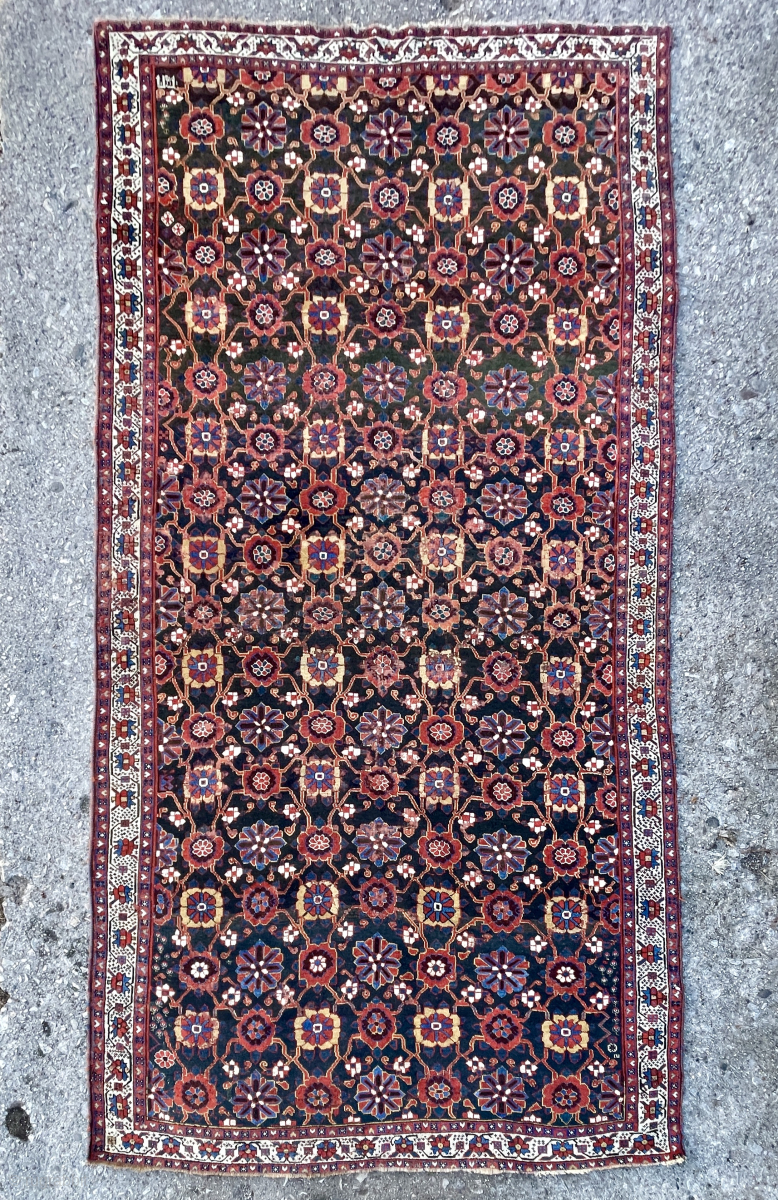 Fine Southwest Persian Tribal Rug with Mina khani design dated 1259 - has some wear and old repairs - about 5'0 x 9'4 ft. email - mete@yorukruggallery.com