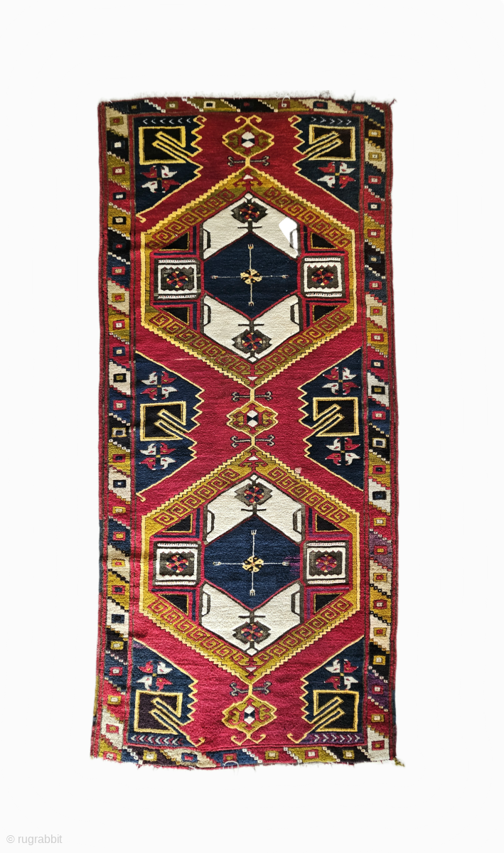 Symbolism: The double-medallion structure and the "ram’s horn" (koçboynuzu) motifs represent strength, fertility, and the silent language of Anatolian weavers.