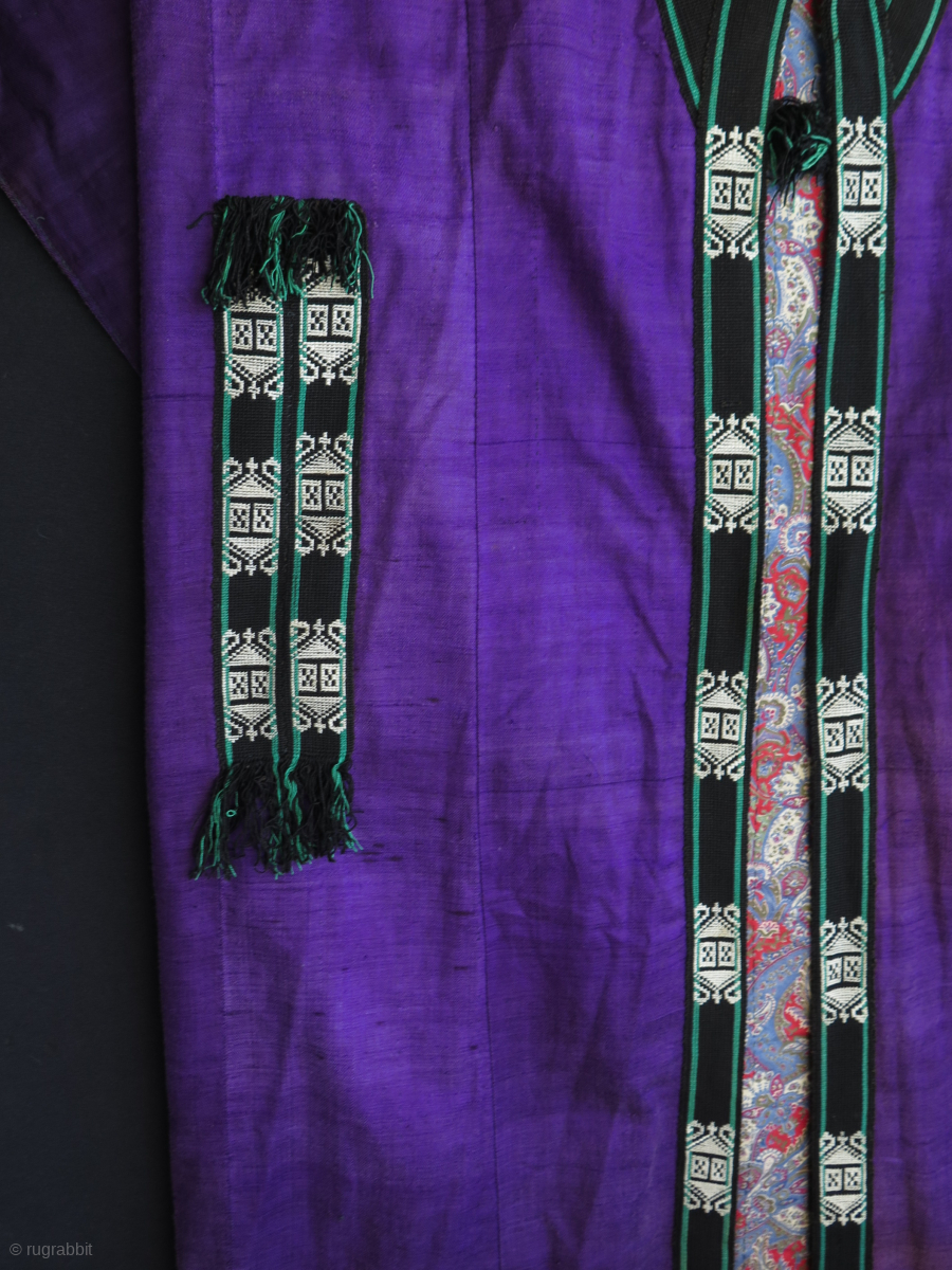 Silk base and silk embroidered sides. Some worn areas on the backside.