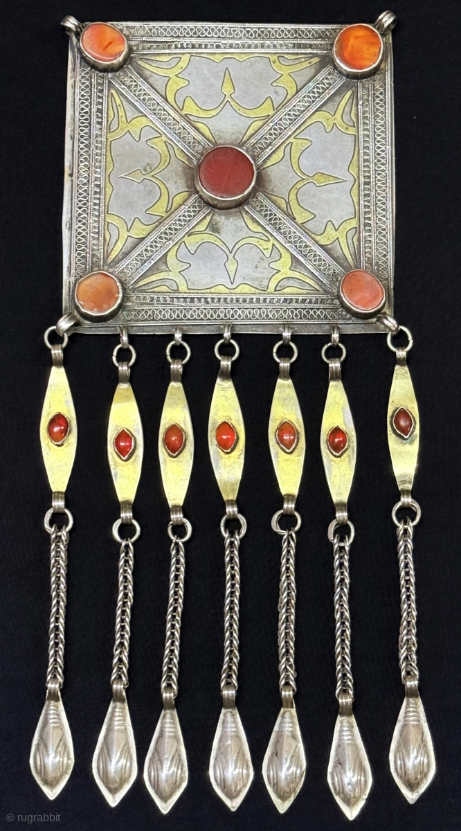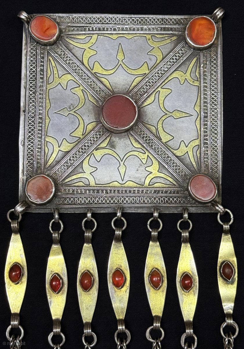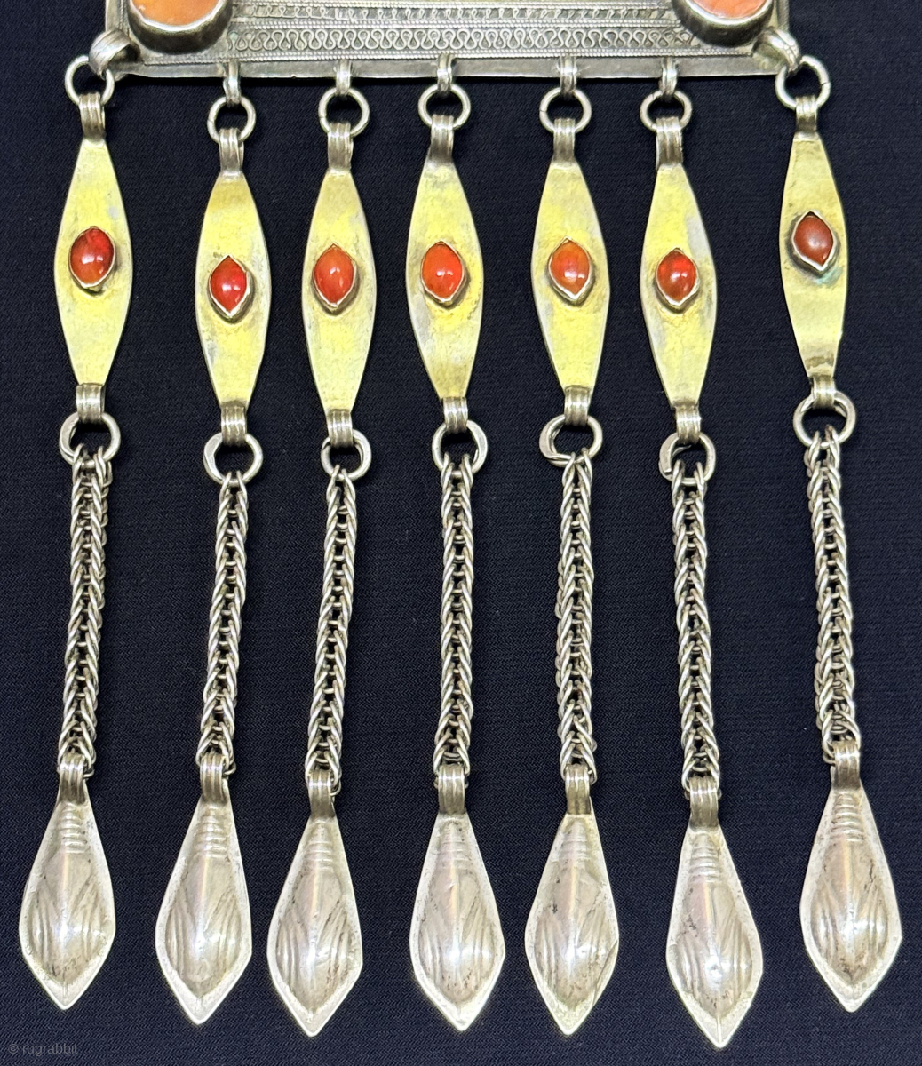 Antique Turkmen - Tekke silver necklace Circa - 1900 or earlier. Size : (10'' x 4'') x (''25 cm x 10.5 cm'') x Weight : 178 gr. turkmansilver@gmail.com.