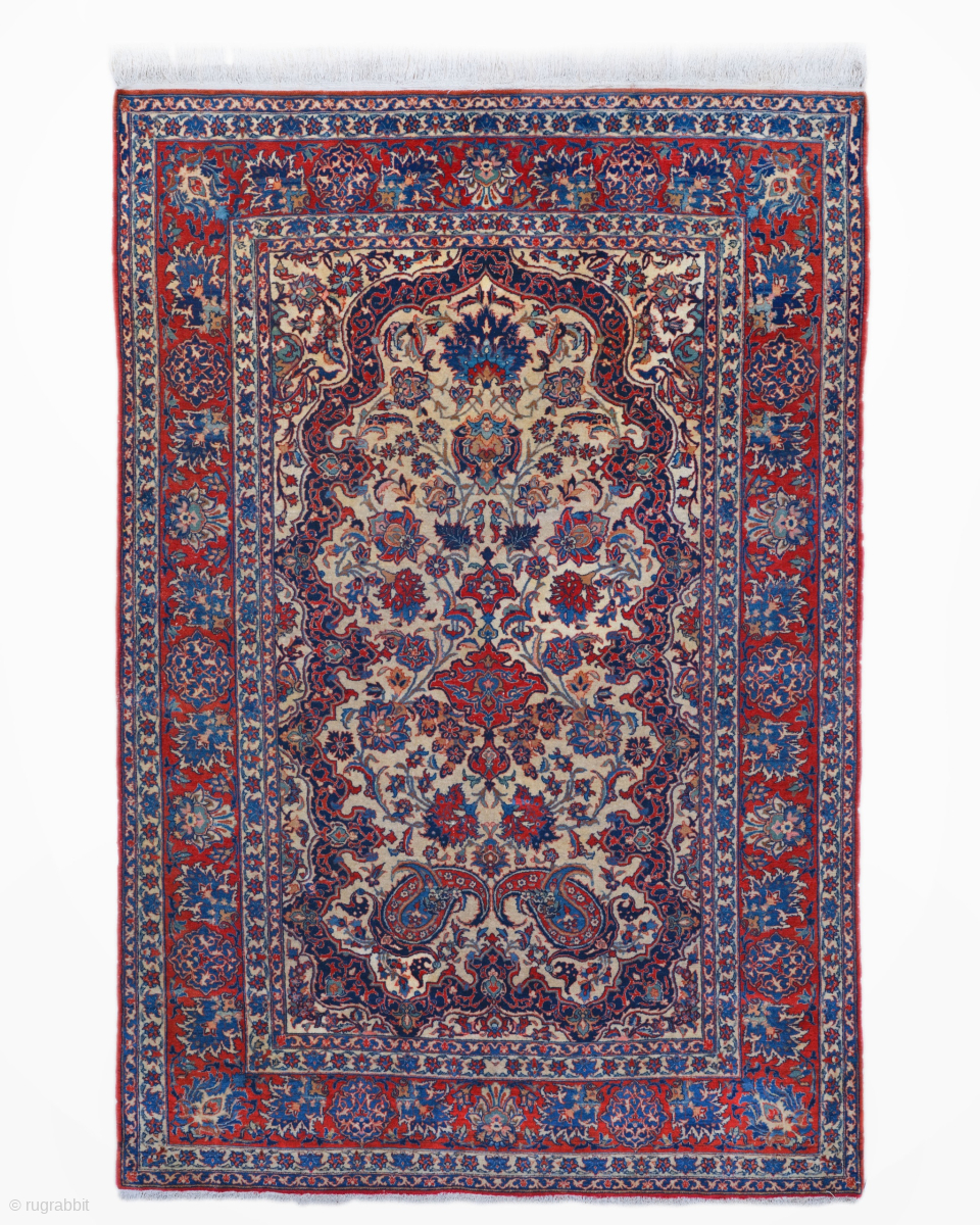 Overall, this late 19th century Isfahan rug is a work of supreme artistic and technical merit. Its classical proportions, symbolic motifs, and masterful execution make it a highly significant piece for serious collectors and a breathtaking center-piece for refined interiors.