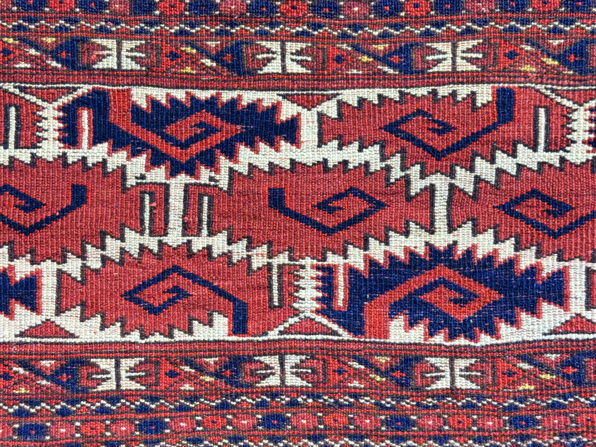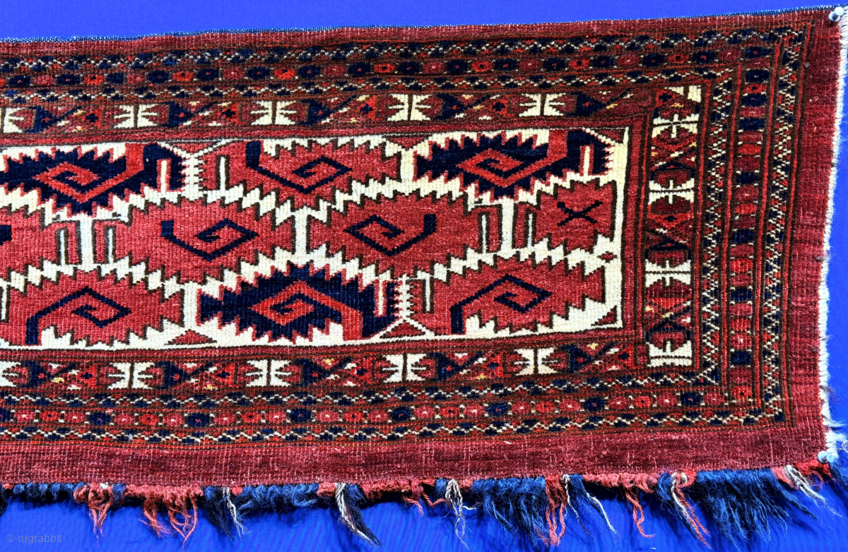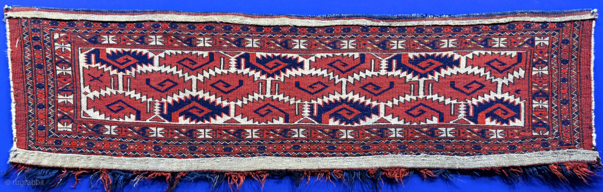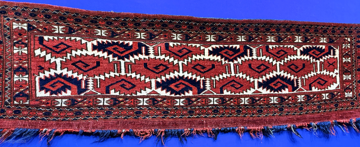 Antique Turkmen Saryk Torba Face. Full pile survived in great condition. It is one from long group. Natural colors from vegetable dyes. Size - ''139 cm x 43 cm'' turkmansilver@gmail.com.