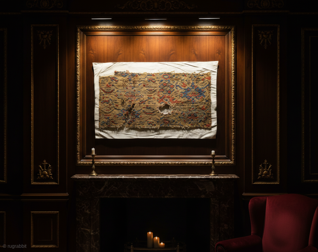 An extraordinary and rare textile fragment, believed to date back to the 13th-century Seljuk Period of Anatolia. This piece reflects the sophisticated craftsmanship and aesthetic language of major Seljuk centers like Sivas or Konya.
