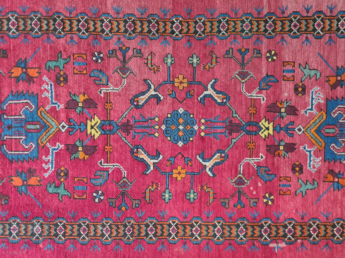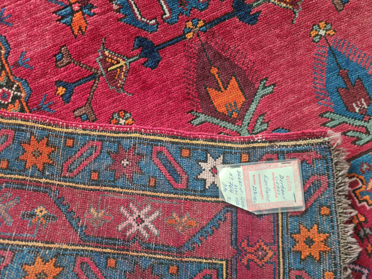 Caucasian rare rug from the Derbent region. Probably an Armenian church / altar rug. Early 20th century. Wool-on-wool knotted. Good condition. The pile is still well preserved. 227 x 130 cm