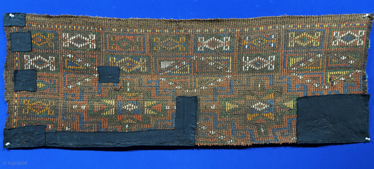 Kyrgyzstan full pile wool fragment rug. Circa - 19th cent. Size : 50'' x 17.5'' - ''127 cm x 45 cm'' turkmansilver@gmail.com.