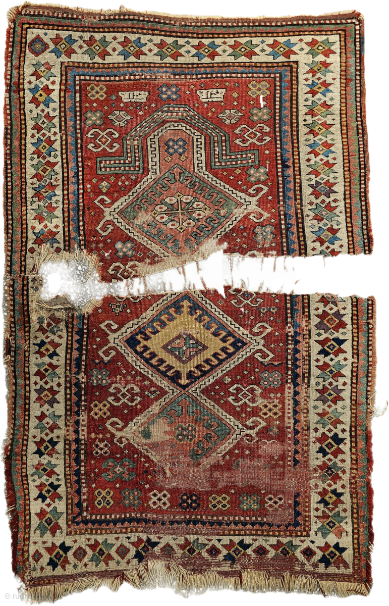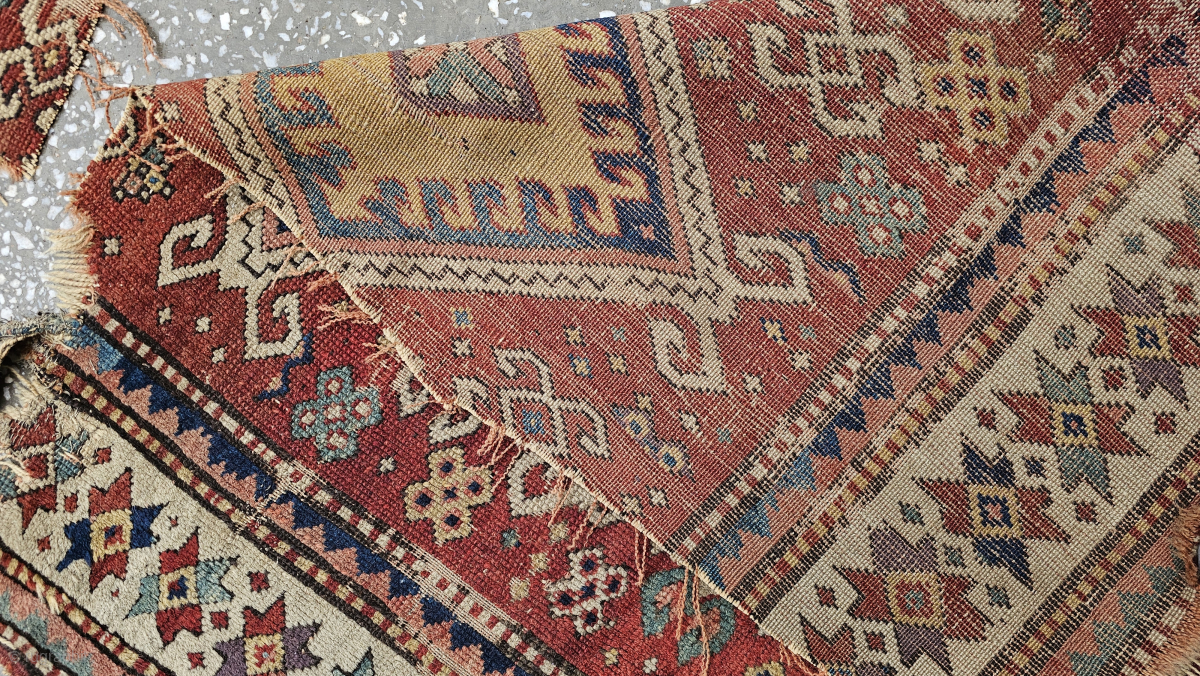 This mid-19th-century Kazak rug carries a story as fragmented as its weave. Decades ago, it was literally torn in two—a common, heart-wrenching way for two brothers to divide their inheritance. For years, these two halves existed as separate entities, carrying the weight of a family’s split history.