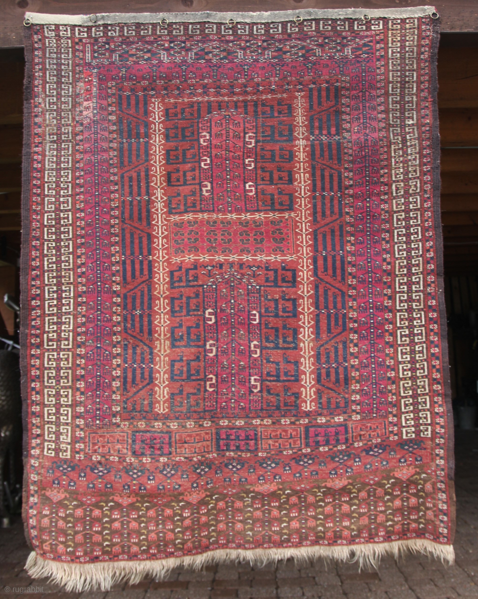 Saryk Engsi 19th centory, a small restored area, velvety carpet pile, in generally