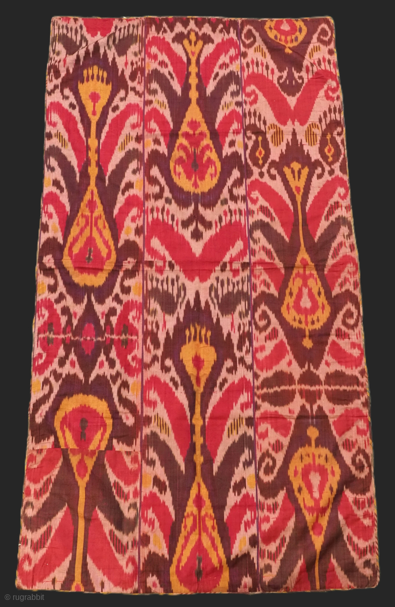 The ikat panel has been re-backed backed with later printed cotton cloth.