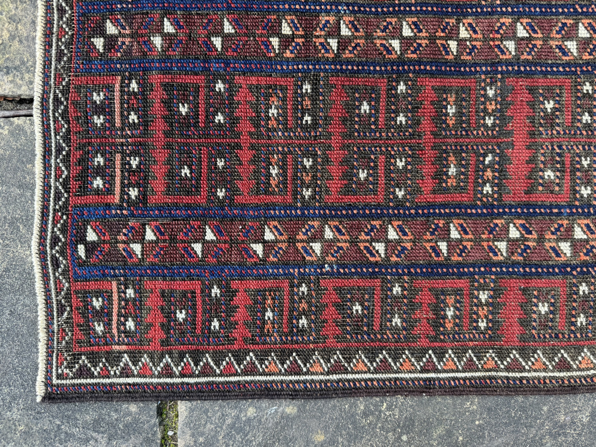 Unusual antique Belouch bagface, tree of life design. Low all-over pile