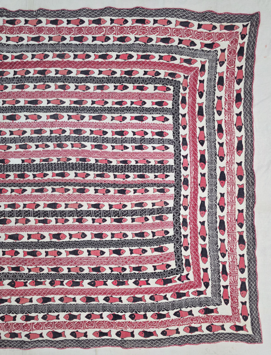 A superb late 19th century quilted and embroidered cotton Kantha, probably from East Bengal,