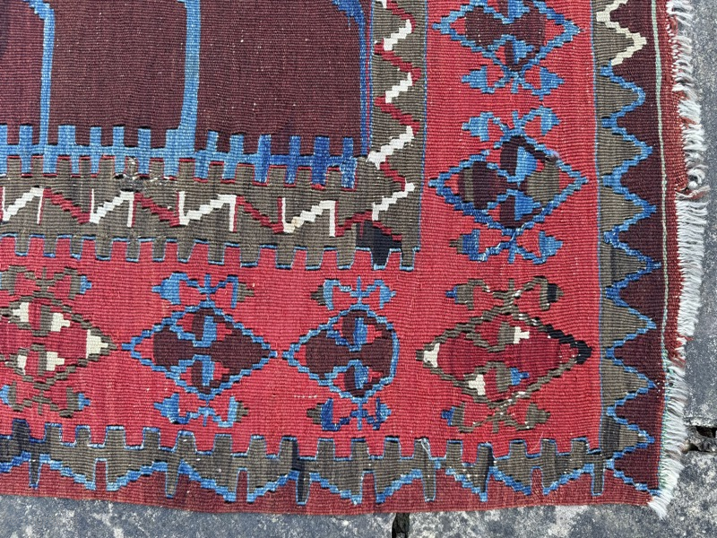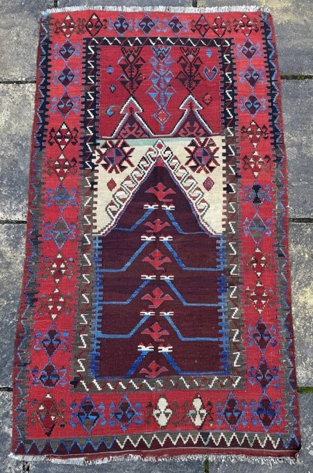 Antique Anatolian prayer kelim, Konya-Obruk (?) Powerful design, striking colour contrasts