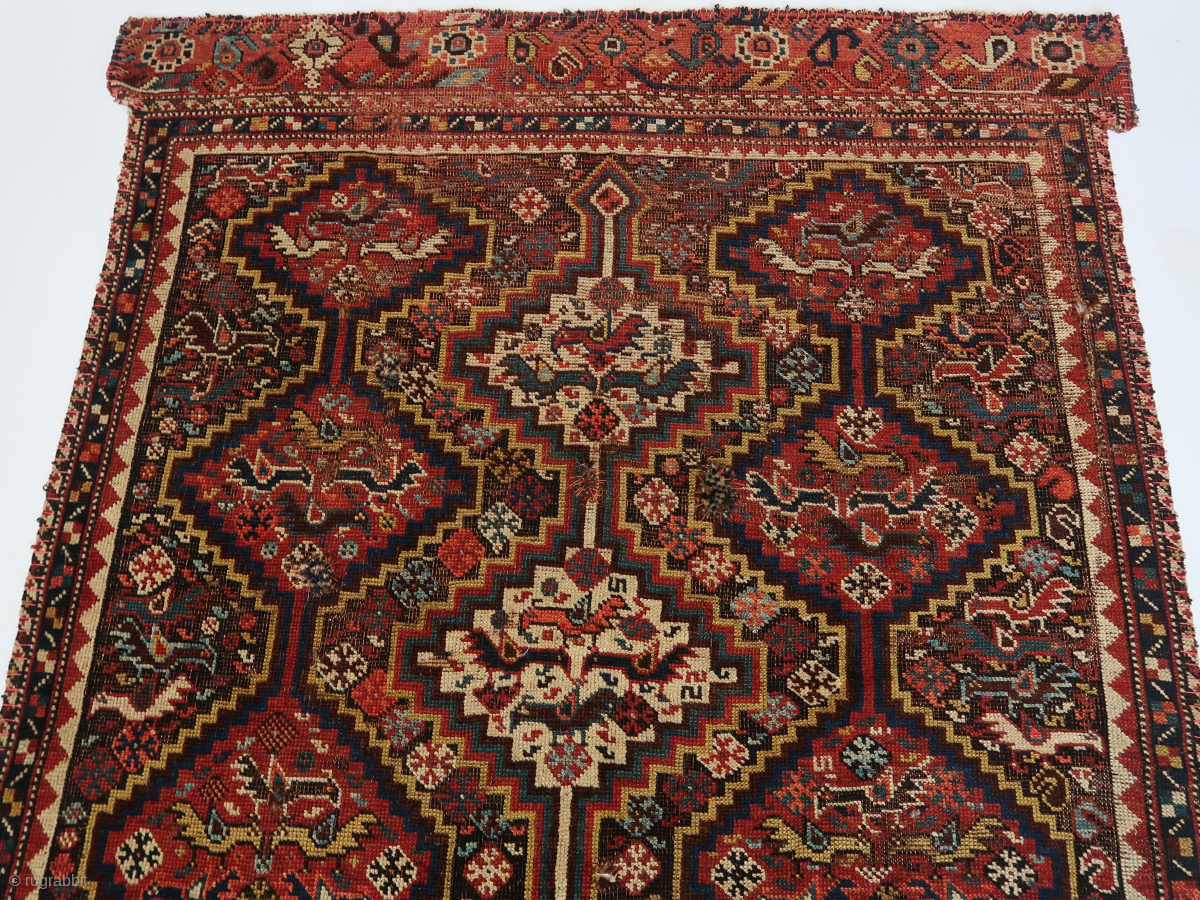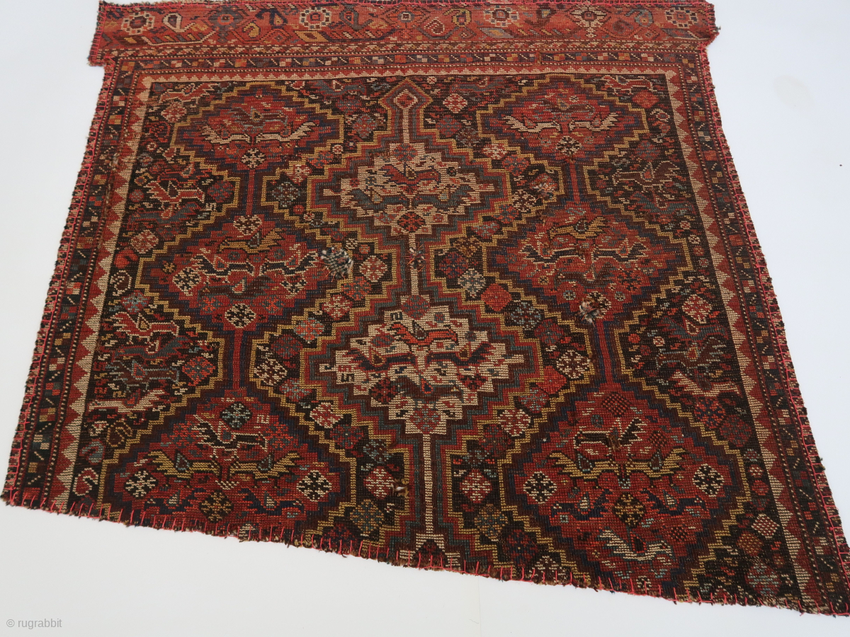 Fragment, South Persian Tribal ? , Wool on wool, three rows of rhombics placed vertically on the central field filled with several types of birds. ca : 97 cm . x 104 cm. lightweight. Origin Unknown. 95,oo euro ex transport .