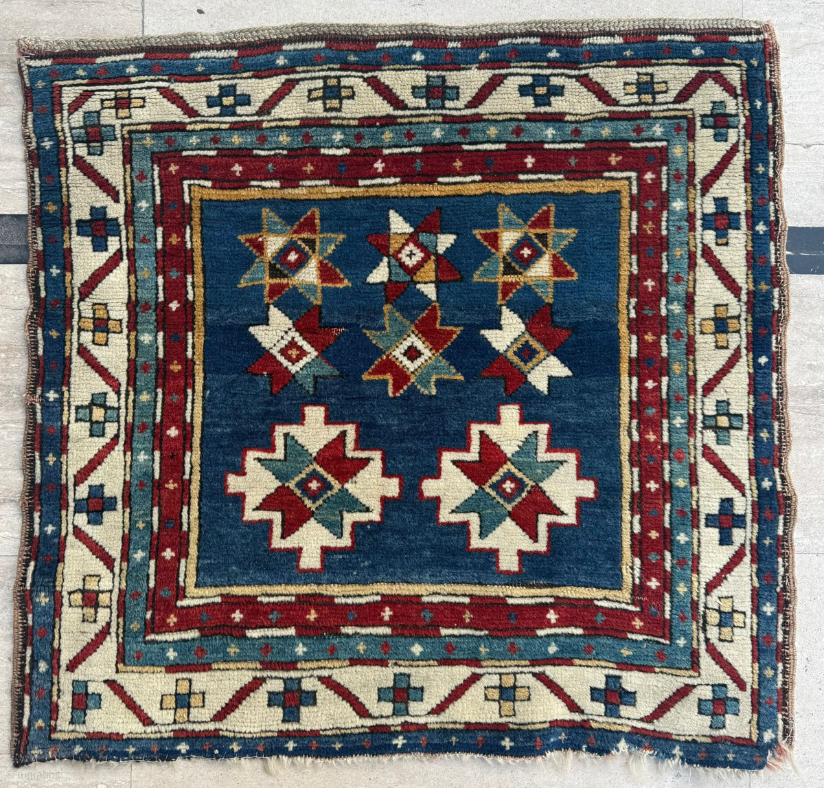 Circa 1870 Kazak Rug, size 70 x 75 cm. Please send me direct mail.