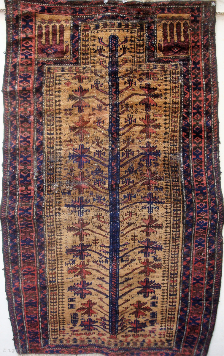 Unusual Antique 19th century Baluch prayer rug with up-curving branches, 32 x 51 inches. --Inexpensive -- please inquire johnbatki@gmail.com