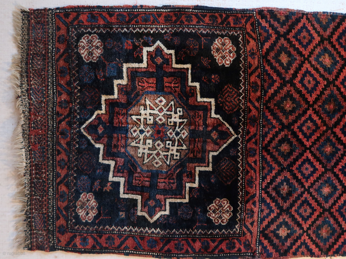 Khorjin single ,opened, a twenty-four pointed star with internal Para ( doodad ) Mamluk eight pointed strapwork star. ca 132 x 72 cm. Wool on wool. Afshari ?