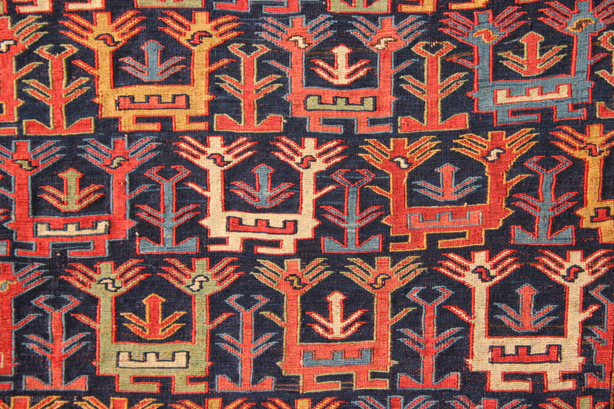 i think this is one of the best of its type, it's early, it's fine and has the very best colour possible. The double headed birds or beasts really sparkle. Circa 1820-40. Mounted, frame size: 72 x 62cm / 2'4" x 2'0"