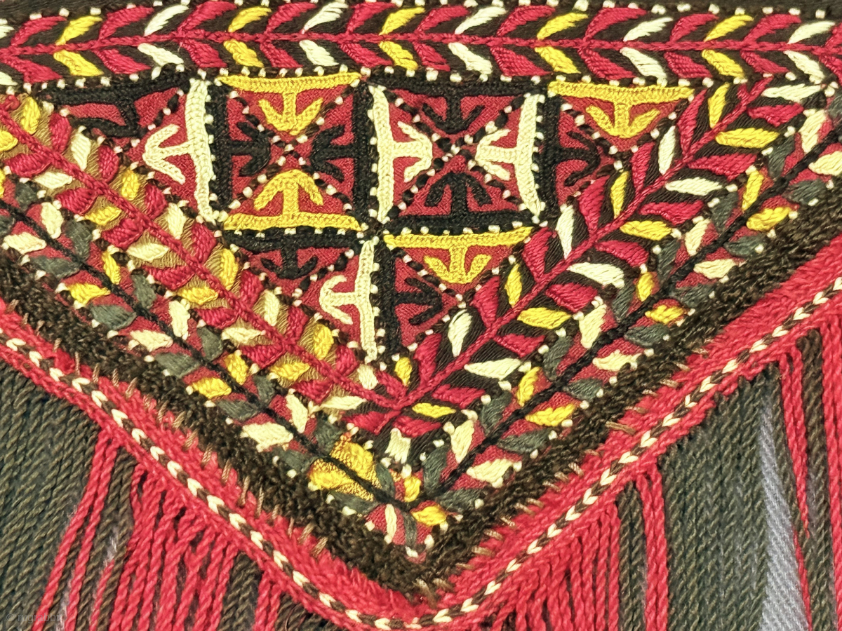 Turkmen pair of silk embroidered tassels hanging. It is in good condition. Size : 7.5'' x 7.5'' - ''20 cm x 19 cm'' turkmansilver@gmail.com.