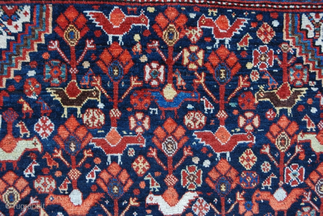 Chickens galore! a wonderful early Baharlu rug of the Khamseh Confederacy in very good condition, very finely knotted with beautiful saturated natural colours throughout.