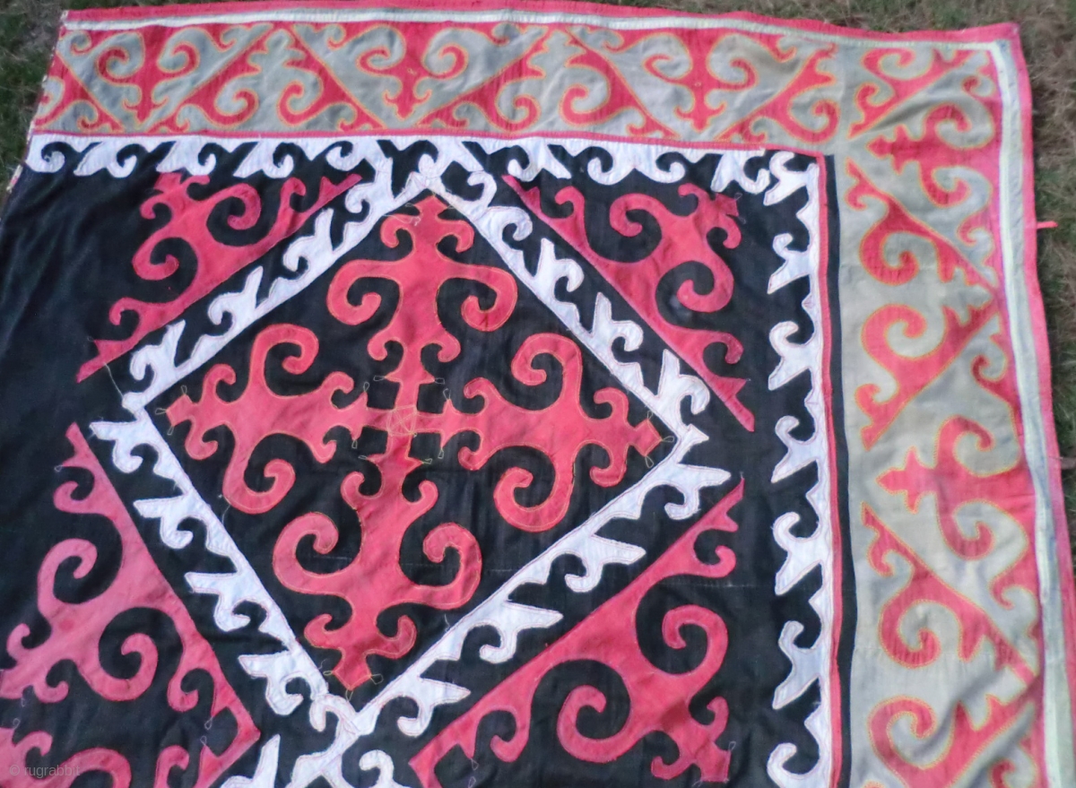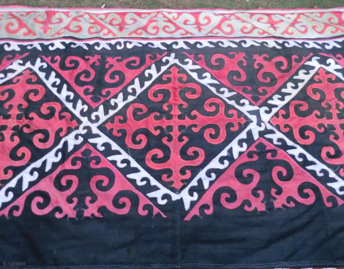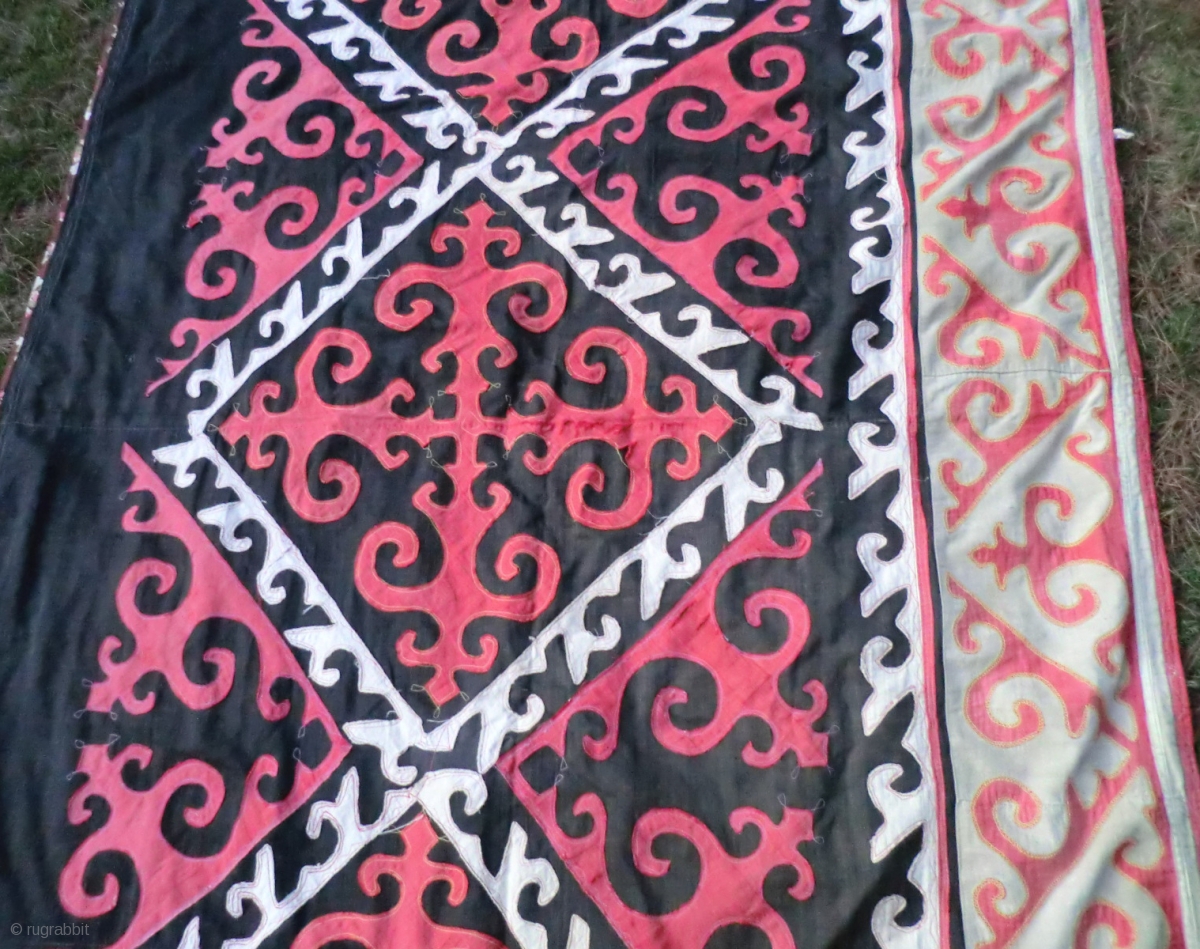 Large Kirghiz? Applique Panel 66" x 130" (approx. 5-1/2 ft. by 11 ft.) This looks like it could be a Kirghiz piece but the stitching does not look typical. It is in very good condition with a few areas of light wear (see close up detail photos)
