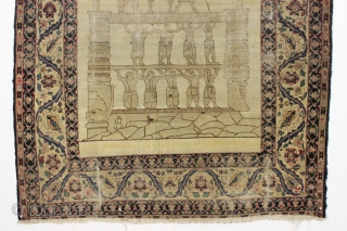 Antique persian kirman pictorial rug. Interesting design. "as found", dirty and with wear and damage as shown. Older colors. Good age, late 19th c.? 4'5" x 7'1"
