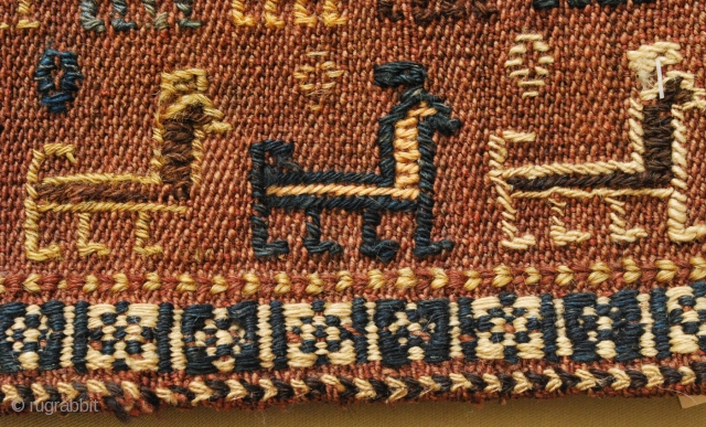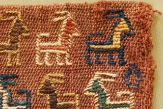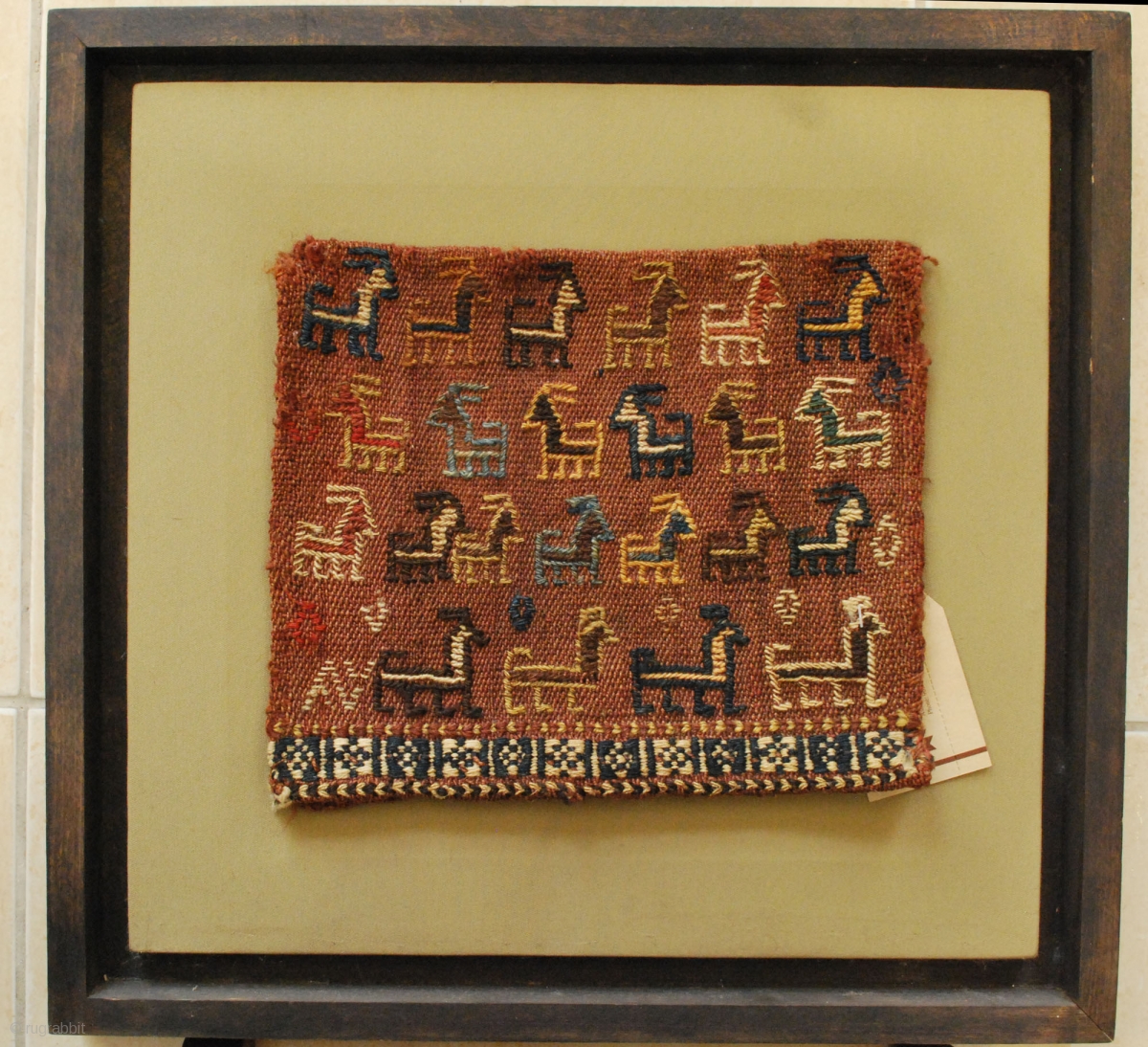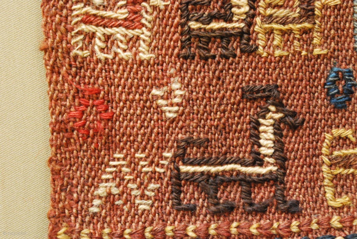 Antique small Qashqai bag, 30 x 25 cm. All wool. Slightly weak texture upper right corner. sewn on canvas and framed with massive hard wood. Could be easily detached and sold alone.