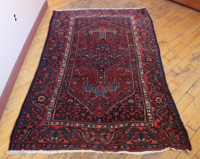 Older bidjar rug. Excellent condition with great color and an unusually nice border. Out of local home. Full pile with no repairs. Reasonably clean. Wonderful floor rug. early 20th c. 4'5" x 6' 11"