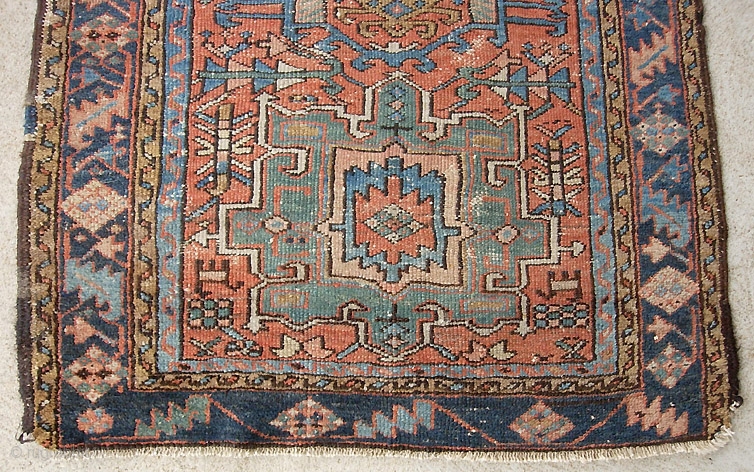 Karaja 3 ft 5 by 4 ft 6 inches. Got obvious wear issues but i picked it up on the accounta it is a very cool thing and real ancient and archaic.