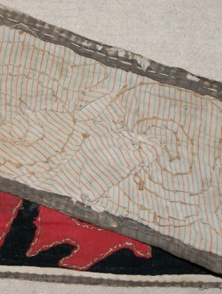 a Excellent 19th cent kirhgiz embroidery, It was door band, it has lovely veg dyes colours, and it has beautiful red banoot ground, with velvet. it is spectacular piece.more info please mail me.