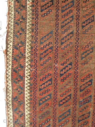 An unusually designed Baluch carpet from the late 19th century. It has some minor selvage damage, and a little low in pile in some areas. It measures out to 2ft 10in x 4ft 10in. Peace and blessings...