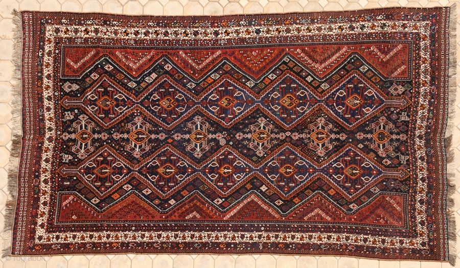 this is a rare carpet.it is a khamseh -i did indicate that it is a niriz,however,it could be from Bowanat to the north of niriz.it has red brownish weft, and finely knotted.it is older than what i did estimate,but as collectors we tend to be conservative when giving age to pretty things,especially when they are perfect.