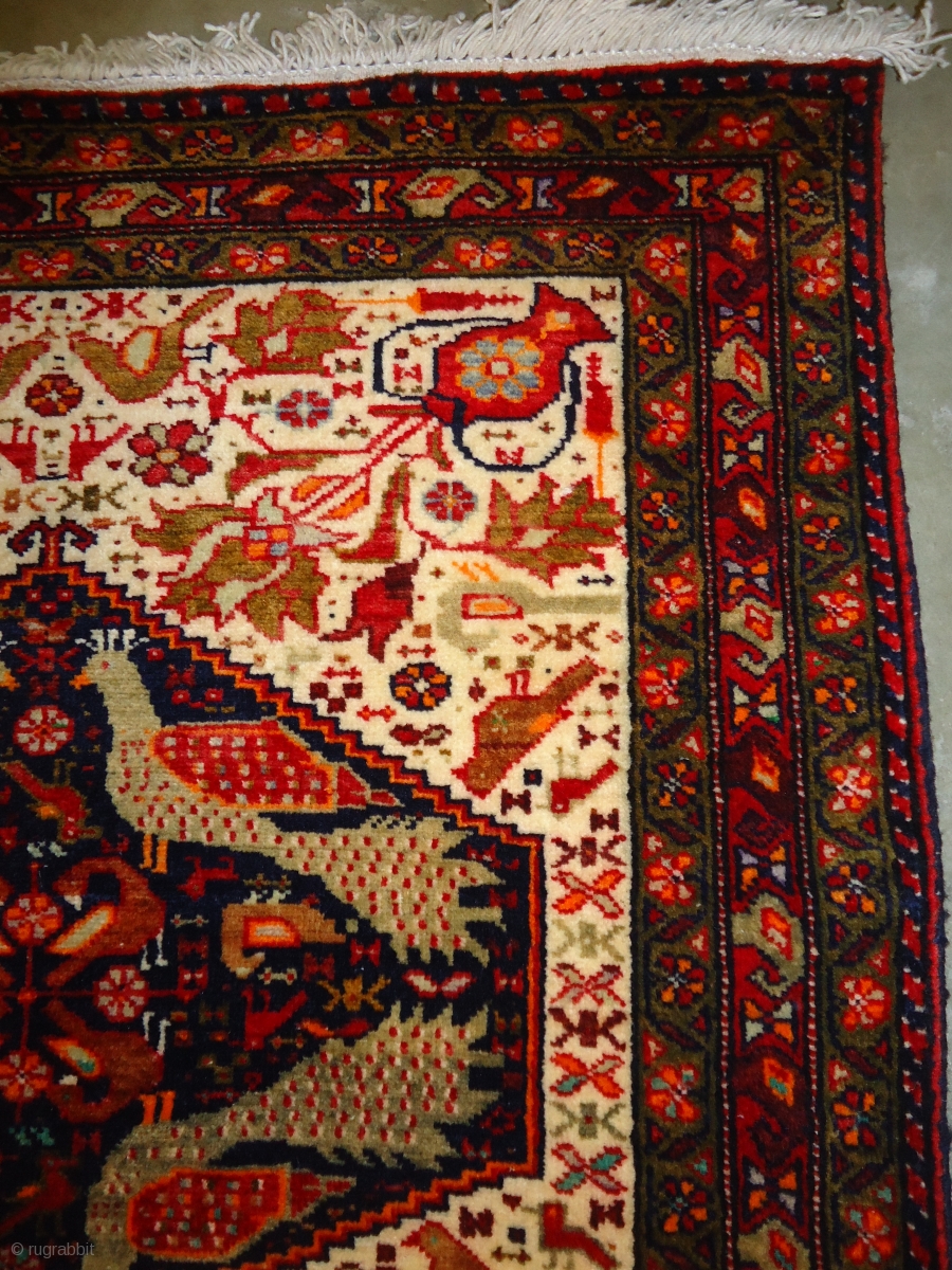 Superb Persian Bag face or Hanging Pce Pair with Peacocks and Birds,exceptional pics with some synthetic colors and but great drawing and condition,E.mail for more info.