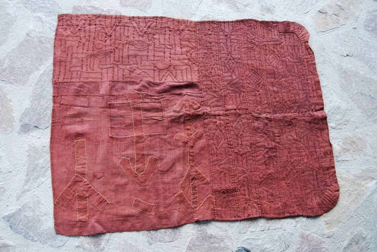 Bushong is a tribal group in the region called Kasai in what is now the Republic of Congo. N'gende is a subgroup. N'tschak is a royal vest in raffia worn by the ladies of the king's entourage. They were up to 6 metres long and about 1 meter wide. This is a fragment made out of two panels. In the western world we appreciate such vests as pure primitivism art. Matisse, Klee, Kokotschka, Capogrossi, Rothko, Jensen, just to name a few, all of them had inspiration from the tribal art.