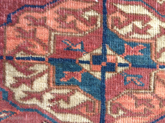 main rug tekke 200/243 cm the rug is in mint condition some holes on the kilims (50 cm) antiqe late 19 ch never tach fine wive need wash