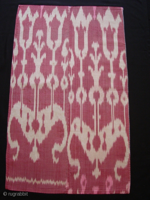 Silk Ikat Fragment. 71cm long and 47 cm wide. On black backing.